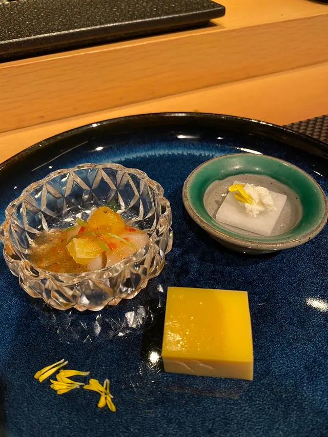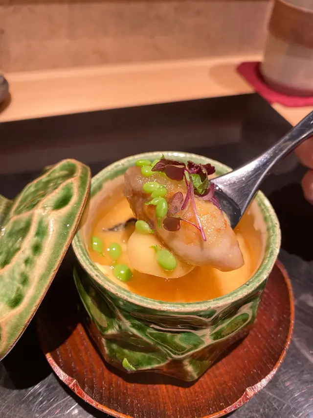 前菜:日本串茄精緻的開場小品,串茄內裡軟糯香甜,擺盤典雅,體現了懷石料理對於季節感的講究。一品:使用香煎金豪做的茶碗蒸創新演繹的茶碗蒸,金豪魚的香煎增添了層次感。蒸蛋質地如絲綢般滑嫩,金豪魚的鮮美完全融入其中。蛋液綿密細緻,入口即化,魚香與蛋香的結合令人驚艷,展現了廚師對火候的精準掌控。二品:深海池魚刺身配博多蔥酸汁取自深海的池魚肉質緊實,透明度高,展現出極致的新鮮度。搭配的博多蔥酸汁清新爽口,蔥的辛香與酸汁的清爽相得益彰,提升了池魚的鮮甜。擺盤如同水墨畫般優雅。三品:香煎吞拿魚下巴油脂豐富的吞拿魚下巴經過完美煎製,外皮金黃酥脆,內裡依然保持多汁。魚肉與骨邊的膠質完美融合,每一口都能品嚐到豐富的層次,展現了簡單烹調方式下的極致美味。四品:十勝和牛配大根來自北海道十勝的高級和牛,油花分布均勻,入口即化。大根經過細火慢煮,完美吸收了和牛的精華,清甜中帶著肉的鮮美。和牛的香氣與大根的清爽形成絕妙平衡。五品:木糠魚天婦羅外皮金黃酥脆,內裡鮮嫩多汁。麵衣輕薄,完美襯托出木糠魚的鮮美。炸製技法精湛,既保持了魚肉的嫩滑,又讓外皮達到理想的酥脆度。六品:秋葵天婦羅秋葵的爽滑與天婦羅的酥脆完美結合,保留了蔬菜的鮮綠與爽脆。麵衣輕盈,不失秋葵本身的自然鮮甜,展現了對食材的尊重。七品:南瓜天婦羅南瓜的自然甜味在天婦羅衣的包裹下更顯突出。外酥內軟,口感層次分明,南瓜的香甜與麵衣的酥脆形成美妙的平衡。甜品:杏仁咖啡雪糕精緻的收尾之作,杏仁的香醇與咖啡的苦韻完美融合。質地綿密順滑,入口即化,讓人回味無窮。溫和的甜度恰到好處,既不會喧賓奪主,又能畫下完美的句點。整體而言,這套料理完美展現了四季更迭的意境,從食材選擇到烹調技法都極致考究,每道菜都充分體現了對食材的尊重與對細節的追求。…查看更多