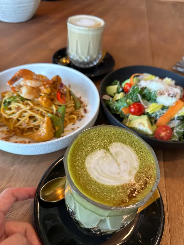 。可能平日關係冇乜人,好多空位,我哋揀咗個靚位坐低。有個應該係經理嘅姐姐好細心幫我哋介紹嘢飲,同埋推介嘢食。最後我揀咗matcha soy latte,朋友試hojicha oat latte 都唔錯