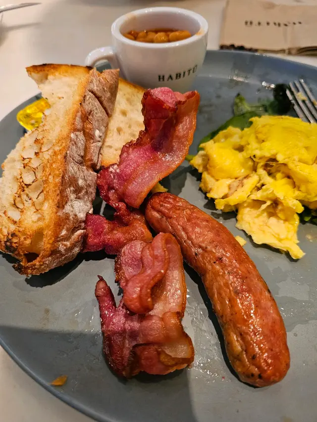 8月12日晚 8 點到入座,叫了一份烤雞及All Day breadfast,待應細心解釋主菜需時20 分鐘以上,我們表示明白可以等。All Day很快上檯,無奈除了煙三文魚,茄汁豆,沙律正常。其餘稍微需要"廚藝"的炒蛋,香腸煙肉全部過熟過咸,炒蛋一塊一塊都算,條腸熟到甩皮甩骨,煙肉都熟得好堅挺。本考慮轉其他,烤雞扒奇蹟地好快上檯。一刀切入去,韌到無倫,唔洗咬一滴汁水都冇,微波爐翻叮質素。呢碟真係啃唔落,揾待應幫手換走碟烤雞,轉沙律保平安算。既然係咁All day就算啦,勉強食幾啖,好彩就唔算太餓。唯一就係待應態度幾好,唔係真係搞唔掂。…查看更多
