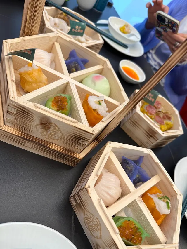 今次呢間點心舖幾特別,比起傳統嘅點心舖多咗少少特別嘅嘢食😳而且裝修風格亦都顏色鮮艷突出🌈一口豆腐 $58熱辣辣脆卜卜咁樣上枱😍食落去表面脆入邊內軟,岩岩好,底下仲有啲脆豆襯托,食食下就食完成碟一口鹹水角 $38顏色上面好特別,亦都係新鮮炸上枱,細細個啱啱好,但都做到中間煙靭一龍大滿足 $70樣樣點心都想試少少,就梗係嗌大滿足😳一上枱用個點心籠已經特別靚💓,鹹蛋黃墨魚燒賣同蟹粉菠菜香蝦餃都幾特別,前者中間真係會爆汁,好有鹹蛋香味,後者顏色同埋味道都好好脆脆富貴紅米腸粉 $52紅米腸粉皮包住蝦滑,外型吸睛,比起一般腸粉佢係脆卜卜,仲跟埋三個醬唔同風味拉絲菠蘿包 🍍$38佢個外型比傳統嘅菠蘿包細少少,幾精緻,希望內涵加多少少,做多少少拉絲效果芋圓西米露 $68估唔到點心舖都有咁多糖水嘅選擇,咁就唔使周圍搵糖水舖😳西米露,原來入邊有包含好多配料食落去非常之滿足,而且份量好足夠適合幾個人share龍點心 (中達大廈) (尖沙咀)尖沙咀海防道38-40號中達大廈1樓…查看更多