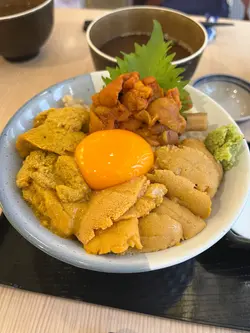 #漁匠屋.Bookmark左好耐 係屯門紅橋既魚生丼飯小店 店舖大約有十多個位置 下午有落場時間 6點會再開門.今日試左 #弍之重丼 同 #三國海膽丼 .首先會上咗麵豉湯同一片煙燻芝士 咁樣嘅配搭幾特別丼飯既飯底本身已經有味道 可以唔使再調味.🍚弍之重丼 有赤身 兩種魚 海膽 蔥吞拿魚蓉 海膽 同赤海老 可惜我嗰日海路遲咗返貨 所以換咗另一款魚🍚三國海膽丼 會用日本加另外2個國家海膽 視乎季節 我嗰日食係俄羅斯同澳洲 .總括來說 魚生新鮮 海膽(特別係日本)好鮮甜.溫馨提示:唔想等位就要一開門就去 當天我6點開門入去之後好快就已經坐滿了…查看更多