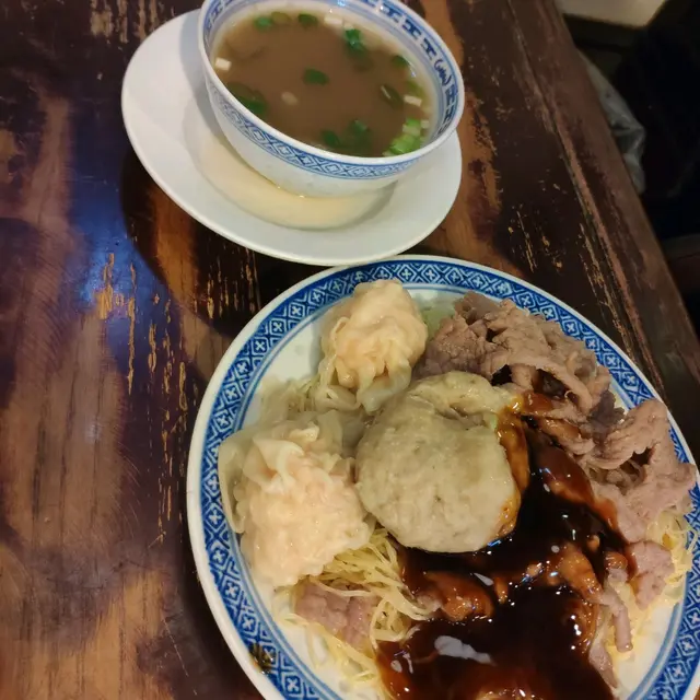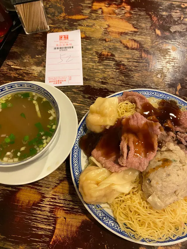 都係一間米芝連麵食餐廳,佢個菜牌就十分簡單好多,麵只有幼麵,配菜只有雲吞、鯪魚球、鮮牛肉揀,可以揀單餸、雙拼、三拼(即三寶),又只可以揀湯麵或者撈麵,極其量加碟油菜,餐牌就係咁簡單。我揀咗個三寶撈麵$52蚊,就已經係全個餐牌最貴最豪嗰個麵😂沾仔記三寶撈麵 $52呢個撈麵份量真的不少,仲要隨撈麵奉送一小碗湯。湯是一碗蝦清湯,味道不算濃但很香甜的蝦味,估計是以蝦頭敖出嚟嘅清湯,味道真的不錯👍🏻用以配麵一齊食,不會搶去幼麵的味道,又保留蝦湯味,配搭很好👍🏻麵是鹼水麵,但沒有鹼水味,其實要鹼水麵沒有鹼水味係要花時間與功夫,但現今很多麵店已經放棄,沾仔記仍然能保持住已是難能可貴。鯪魚肉大大舊,鬆軟有魚味又無腥味好食👍🏻牛肉又嫩又滑,只係欠缺牛味,但都已經很不錯👍🏻雲吞又大隻,裏面大大隻蝦又彈牙又爽,又好食😋個麵加蠔油幾夾,比一般雲吞麵店的麵彈牙,又係好食👍🏻整體來說雲吞麵舖通街都有,好多人都識整,但要排衆而出的就必須有個人之處與一直的堅持✊一個簡簡單單嘅雲吞麵能夠做得如此出色,好嘢👏🏼以後都會多啲幫襯🍜…查看更多