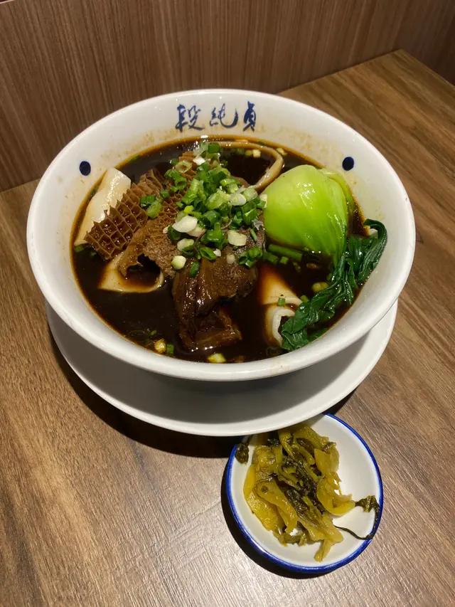 台灣麵總係令人食過返尋味,今次再食呢一間台灣過江龍牛肉麵段純貞😋無論湯底、麵質、小食、飲品同服務都冇令我失望😋可以再encore🤣🥩三寶麵(腱心、牛肚、牛筋)($92)湯底好濃郁,有一陣淡淡嘅藥材味得來唔算太辣😋三寶有牛筋牛肚同埋牛腱心🥰牛筋都幾大條,軟嫩帶點嚼勁😀牛肚爽口彈牙吸收晒湯底好入味😋牛腱心軟綿綿,花紋狀油脂分布平均,又多汁又入味🤤🤤今次揀咗配手工粗麵,厚薄不一嘅麵體爽滑Q彈好掛湯,食落滑捋捋🥰而且分量十足,好飽肚☺️ 🧄蒜香手撕雞乾伴麵 ($78)好香濃嘅蒜香同蔥油味🧄流心蛋軟滑入味,手撕雞嘅份量都幾多😻近排天氣咁熱最啱食拌麵,涼浸浸好開胃😋🍗鹽酥雞 ($48)鹽酥雞炸得乾身酥脆,一啲都唔油膩,内裏雞肉軟滑Juicy🤤🤤值得一試😌🥟新鮮豚肉鍋貼 ($48)本身好鍾意食鍋貼,今次呢個鍋貼都冇令我失望,外皮炸得脆脆😋外脆內軟,豚肉同其他配料嘅份量分配得平均,一咬入口肉汁即時流出,食到停唔到口😚😚🧋珍珠奶茶 ($32)奶茶唔會太甜,珍珠Q彈,冰涼消暑☺️🍠香芋珍珠奶茶 ($32)香濃嘅芋頭香味,奶茶控絕對不能錯過😍…查看更多