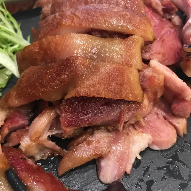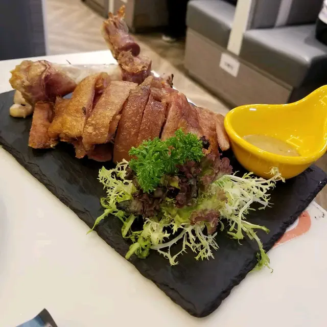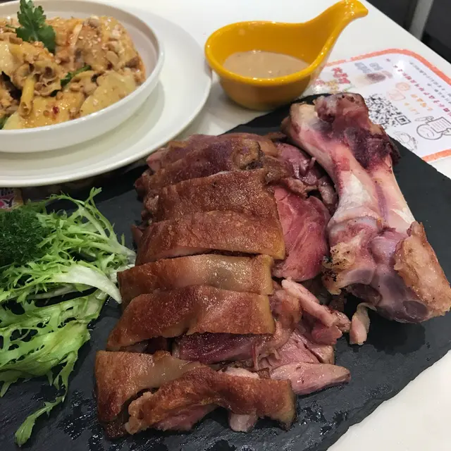 C: 三弄脆皮鹹豬手好特別又吸引,原隻德國鹹豬手,以3種煮法,先用12小時慢煮炆、再焗香、後脆炸,相當考功夫,用心及手功之作;豬手皮好脆口,口感好似乳豬皮一樣的,以烤焗的方式裝作,所以唔會太硬,皮下豐富的骨膠原一層,煙韌又彈牙;豬手肉以12小時慢火炆,好香軟好易咬,微微鹹味好正好出色!份量好大份,好抵食!