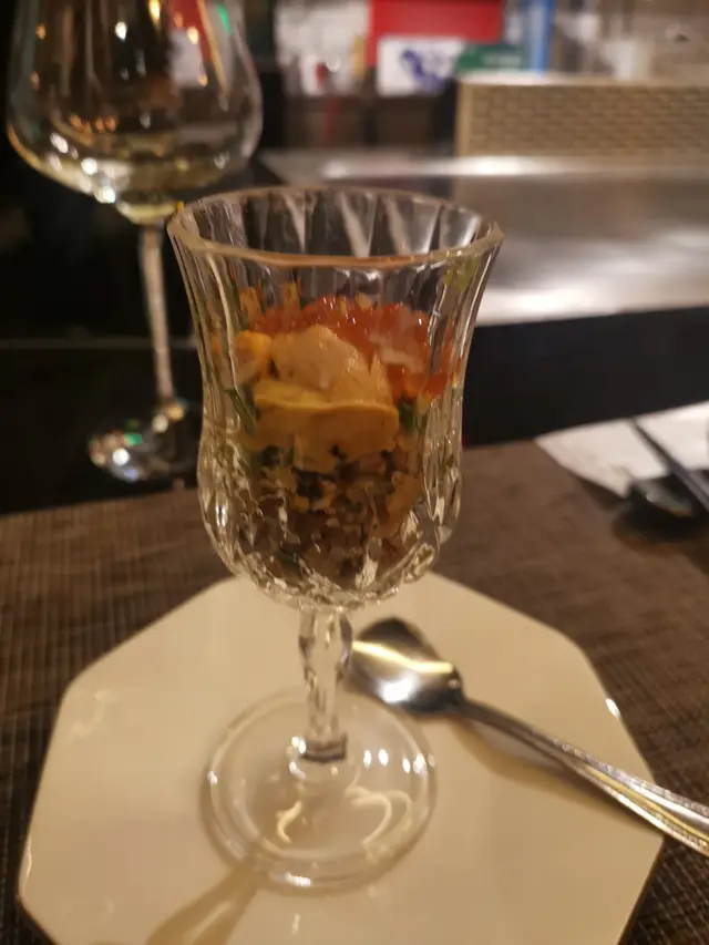 近排工作壓力大,所以想出去透下氣,吃過好的,所以相約友人出去銅鑼灣食餐鐵板燒,見網友好評如潮,故一於就選這間吧!乘電梯直達,去到地方不是太大,但環境別緻。被安排坐下後,聽店員一輪介紹下,就決定食一個SET D 二人餐。首先係一個季節沙律,用上一個大玻璃碗盛載著,每人一個,沙律裡面有炙燒堅魚,蓮芋,羽衣甘藍,日本蕃茄仔Amela,土耳其無花果及泰國露荀,入口清新可口,加入酸甜的柚子醋,堅魚的香,蓮芋的爽脆,Amela 蕃茄仔的香甜,無花果的清甜,加埋露荀的新鮮,令今晚的盛宴揭開序幕。