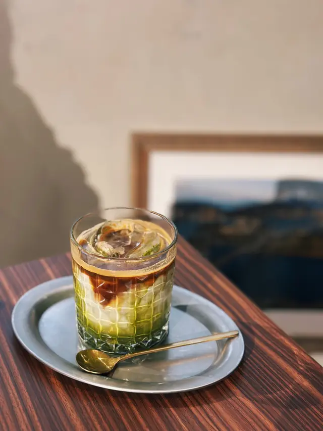1. 環境裏面嘅裝修充滿着工業風格,而且佢入面嘅調色都做得好好,主要用咗木枱同埋黃光打造一個比較柔和嘅氛圍同感覺。亦都俾人感覺好放鬆。2. 飲品我哋分別叫咗一杯三溝同Affogato(雪糕加焙茶)!兩杯都係我同朋友第一次飲,好驚喜呀!三溝: 外表唔使講已經贏咗啦,飲落仲驚喜,佢係用咗抹茶+牛奶+咖啡。飲落去你會飲到淡淡茶香而同時間又會飲到咖啡嘅少少苦澀!真係好特別,而且佢仲加咗牛奶令到更加飲落去好絲滑嘅口感!飲落好順,唔會覺得唔夾。Affogato: 平時我哋飲開嘅通常都係雪糕加咖啡,但呢次唔同啦!佢係用咗雪糕加焙茶去造成呢一個Affogato。將啱啱做好嘅焙茶淋落去雪糕度形成一種冰火交加嘅口感,同埋你會食得到好濃郁嘅焙茶味!成個感覺又幾特別喎😝適合個日唔想飲咖啡,但又想去Cafe叫啲特別嘢嘅朋友仔啊!3. 食物:巴斯克蛋糕: 食落去口感好綿密,你會食得出佢係有打到個蛋糕將冇晒粉粒先去焗!好順滑!軟硬比例啱啱好啊😍
