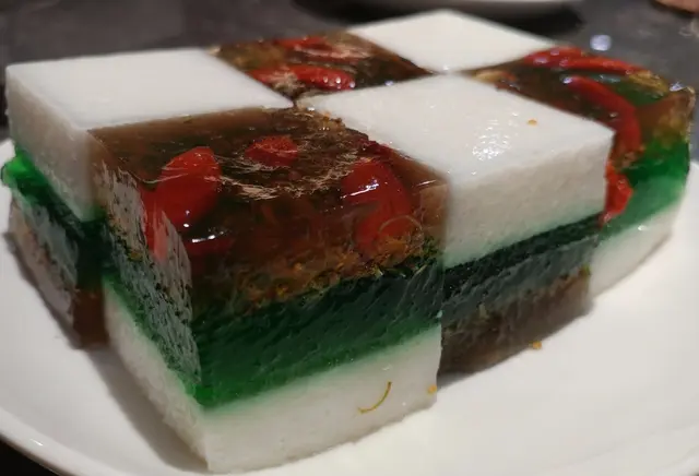 新加坡是多元文化、多元民族的移民國家,由於地處熱帶,南洋的植物香料異常豐富,主打正宗新加坡南洋中菜的樂天經典,以熟悉的中式食材,糅合娘惹咖哩、參巴醬、香茅、班蘭葉等典型東南亞香料,演變成獨樹一幟的異鄉風味。內裡面積寬敞,坐得舒適,裝潢散發東方韻味而不落俗套。茶錢每位 $10,前菜收費為$15一碟。餐牌選擇繁多,大部分菜式都有大中小的份量可選,就算只有兩個人也可點細碟頭,不怕會造成浪費。將傳統中菜結合南洋天然香料、食材和烹調手法,以嶄新手法將懷舊味道重新演繹,為港人平時吃慣的中菜注入新鮮感,酸甜生魚片 $112將酸甜醬汁與炸酥的魚塊相搭配,色澤艷麗,叫人食指大動 ,在熱辣辣的夏日時光裡誘發食慾。酸甜開胃的醬汁調較成濃稠得宜,即時令人胃口一醒。外層粉漿不會過厚,無骨魚片啖啖肉,魚塊雪白嫩滑,炸得外脆內嫩。古早魚香老鼠粉煲 $128老鼠粉煲的名字雖然獵奇,卻是店內的人氣招牌菜式,其實是因選用的銀針粉形狀細長且兩端收窄,恰似老鼠尾巴而得名。趁著熱鍋中的窩蛋還沒熟透時,倒下特製鹹魚酸柑醬再拌勻,鹹魚獨有的濃鬱鹹香氣息瞬間四溢瀰漫。蝦肉夠大隻厚肉,肉質新鮮爽彈,老鼠粉質感煙韌爽口,彈性十足,融合稠身鹹香的湯羹,入口滑溜溜。點了兩款口感清涼而又賣相精緻的南洋甜品,趕走炎夏的暑意。水中花 $38中央飄浮著千絲萬縷的豆腐花,展現師傅的精細刀工,宛如一朵水中綻放的白菊,姿態脫俗清雅。除了帶有豆腐花本身柔嫩的質地之外,亦帶有一絲絲的獨特口感,為這道經典甜品提升層次感。三色桂花班蘭糕 $48三色糕由椰奶、班蘭和桂花果凍組成,白黃綠三色相間交錯,顏色絢麗多彩。一口咬下,三層不同的口感和味道交織在一起,糕身口感Q嫩爽滑,沁人心脾,留下清甜甘香的餘韻,甜而不膩。…查看更多