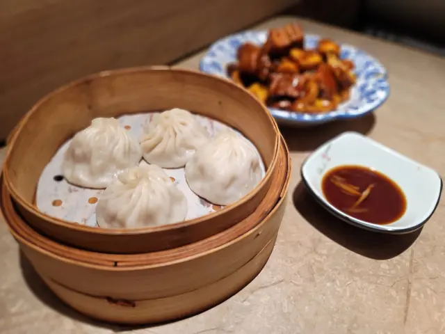 嚟食上海嘢,點一客小龍包就大致了得解到店與店之間嘅水準差別。店員話小籠包即叫即蒸,所以,嚟到時熱氣騰騰,我哋都趁熱食先,雖然摺紋就唔算好靚好平均,但外皮搓得夠晒薄,咬開就見,肉饀鬆化唔在講,裡面仲有好多湯汁,食落又唔覺太多肥豬肉,都算得上有水準,沾上少少醋更好味。