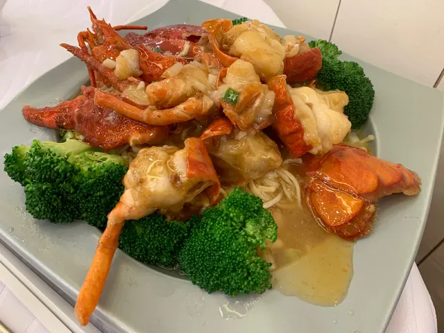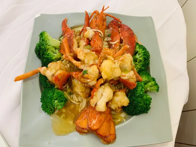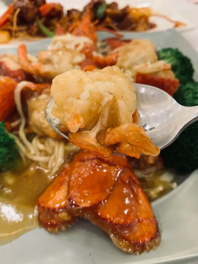 上湯焗波士頓龍蝦送伊麵,有兩個大大隻的鉗,蝦肉新鮮彈牙,上湯惹味