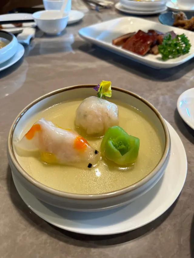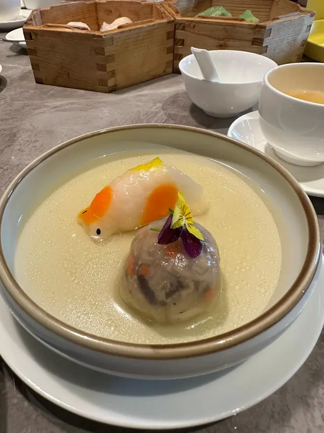 放假跟家人來吃午餐,食物整體很有水準,用料新鮮上乘;座位舒適寬敞,佈置相當雅致;環境及食器十分整潔衞生;員工工作認真積極,非常友善。他們推薦的菊普味道甘醇,加上淡淡的花香,喝完一口接一口。 室外座位很寫意,可以看看山海,往下走更可以遠眺慈山寺觀音像。蝦餃皮薄煙靭,內餡飽滿實正。蝦味濃郁,調味剛好,十分爽脆彈牙,是食過最好味的蝦餃。金魚餃造型像真,鮮蝦內餡和蝦餃一樣。水晶球外皮晶瑩剔透,可以看到入面餡料非常飽滿。配上味道淡淡但層次豐富的上湯,值得一試。帶子超級新鮮,口感柔軟,味道鮮甜獨特,有驚喜。內餡和蝦餃一樣飽滿實正,真材實料,香氣十足。兒時有見過三式糕,三式腸粉真的第一次見,非常適合想試多款口味的食客。腸粉很嫩滑,口感軟糯,內餡肉質鮮嫩。賣相絕對滿分,是打卡的首選。外層酥餅鬆脆,入面的汁煮和牛非常軟腍。小啤梨的造型超級可愛,咬開餡料有輕輕的柚子香,不會油膩。菜心很新鮮,脆度煮得剛好,而欖菜肉碎的味道又不會掩蓋菜心的清甜。炒飯很有鍋氣,粒粒金黃色,炒得非常好。餡料十足,有鮑魚,瑤柱,雞粒,原隻鮮蝦和帶子,整體調味不會搶過食材的鮮味。外皮超脆,肉味甘香,不喜歡肥膩的食客也可以嘗試這道菜。海味用料十足,整體味道很鮮甜,口感細滑。蛋散超級鬆化,入口即溶。楓糖醬分佈平均,甜度剛好。…查看更多