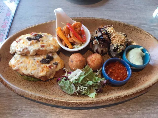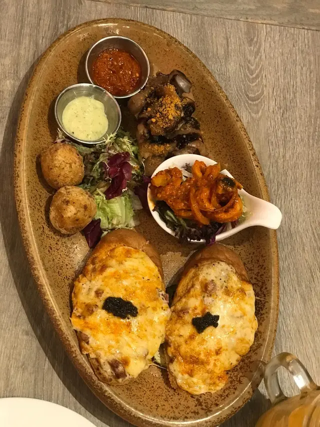 之前去過Azores兩次都唔記得寫影相食評,再黎多次叫既食物就中伏了。。小食拼盤: 整體味道尚可。白色匙羹入面既小食有魷魚🦑,幾有咬口但有d酸。豬手體積略大,女士難以進食,會食到成臉都係汁。小食拼盤最值得一讚既係塊多士。芝士味好濃郁,好好味😋😋😋。 蝦醬炒雜菜: 蔬菜種類好多,值得一讚,但蝦醬份量過多,味道過鹹。。鵝肝焗鴨飯: 睇個樣都知佢No No la.佢既鴨有d蘇,味道似用臘鴨多過鮮鴨肉,個人不太喜歡😵😵你地黎試可以避開鴨飯。我印象中檸檬白酒煮蜆同埋葡式香烤脆皮乳豬件配薯菜都係唔錯既選擇👍🏻 大家可以一試…查看更多