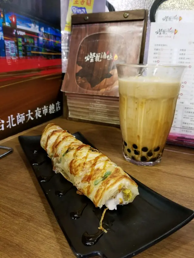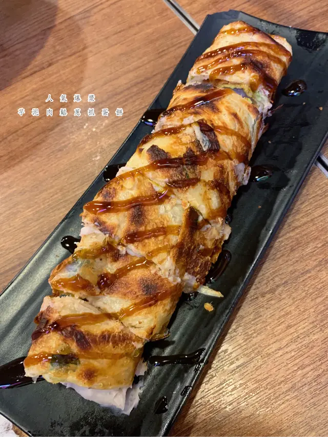 人氣爆漿蔥抓蛋餅。好有台灣風味