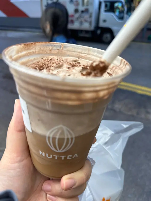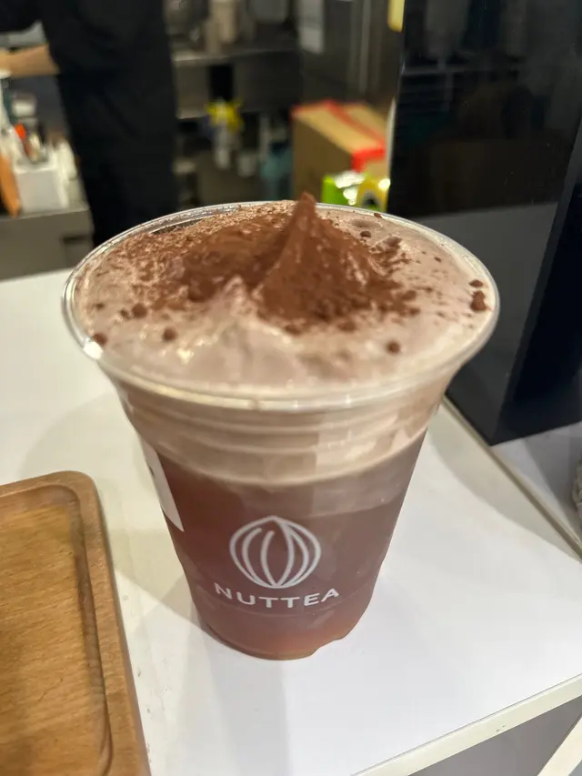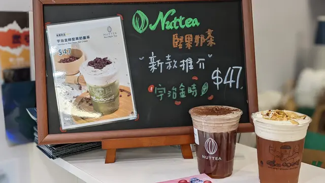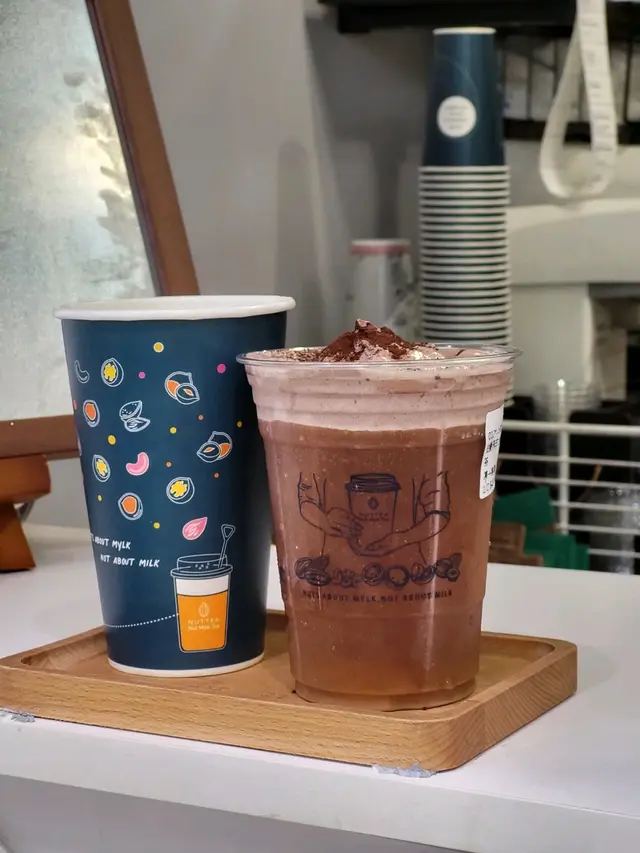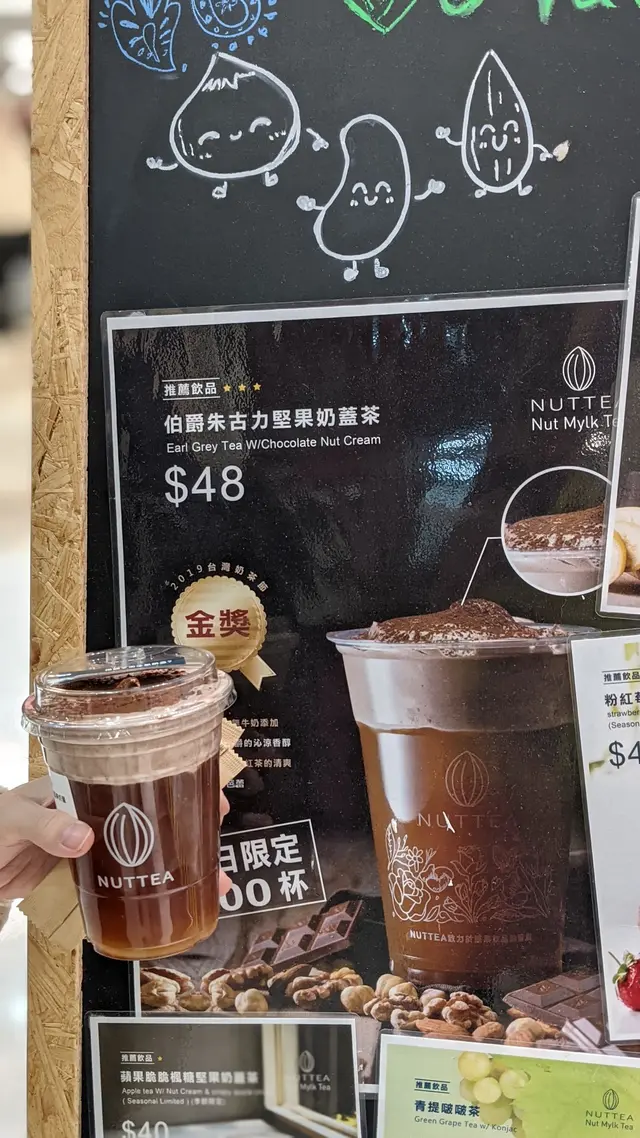 難得放假當然要飲返杯tea慶祝下,慰勞下辛苦嘅自己,經過見到Nuttea,覺得有點新鮮想試下。店舖外有唔同嘅posters 推介,幫助有選擇困難症嘅我,因為Nuttea 唔單止有唔同系列,即使同一系列都有唔同嘅選項。聽聞佢嘅奶蓋好出名又健康,當然要試下,所以選擇粉紅莓好堅果奶蓋茶同埋伯爵朱古力堅果奶蓋茶!店員好好人知道我係第一次飲,特登比我地打左卡先,再幫我地打包拎返屋企飲。外賣包得好穩陣,特登用膠紙包實,中間仲要攝張紙係奶蓋同杯蓋之間防止倒瀉,店員仲好貼心咁教我地點樣享用呢杯Nuttea!粉紅莓好堅果奶蓋茶微糖上面層奶蓋好Rich,好Creamy!味道唔係好甜,同埋有淡淡嘅莓味,仲有d 堅果碎係上面提供唔同嘅口感。下面嘅茶好有莓味,感覺天然同埋唔算好甜,加埋d 奶蓋一齊飲好似飲緊奶昔。伯爵朱古力堅果奶蓋茶凍半糖少冰奶蓋上面有可可粉而不是堅果碎,單純食上面嘅奶蓋,好似食緊朱古力雪糕,味道唔會太甜,仲有堅果味嘅口甘,下面嘅茶係伯爵茶,唔甜飲到茶味嘅回甘,同上面層奶蓋形成鮮明嘅對比,飲到後面將奶蓋攪拌,伯爵茶變得有淡淡嘅朱古力味,唔會好衝突,飲曬成杯都唔覺得厭,非常好飲。店外仲有唔同嘅posters 講解Nuttea 嘅好處以及建議嘅甜度同冰度配合不同系列嘅飲品,可以達至少糖健康而不影響風味。雖然價錢有點少貴,但偶然獎勵自己也不錯,更何況佢係用堅果,感覺又健康同值回票價。…查看更多