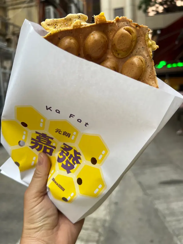 因錯過了一試沙田乙明邨「潮食」的豬柳蛋雞蛋仔,很想有機會一試,知道元朗有小食店,也出售。便順路一試,在澳門也出名的麻糬雞蛋仔。所以點了2 款,一甜一鹹豬柳蛋雞蛋仔$30明顯看到有蛋和芝士咬下一口,已經吃到豬柳,味道主鹹,然後有點點甜。每粒雞蛋仔內也有一粒豬柳粒和芝士,不過豬柳粒好像比正常的更肥?有點膩。概括而言,味道和口感就像在日本叫的那款「熱香餅版豬柳漢堡」鹹鹹甜甜的,注意我說的不是豬柳"蛋"漢堡,因為吃下去蛋的存在感實在不高,而且一直吃吃下就覺得自己也不像在吃雞蛋仔,因為雞蛋仔本體的存在感也不高而到最後會發現,這個雞蛋仔是鹹點,因為真的很鹹。 伯爵茶麻糬雞蛋仔$29看到有一點點,應該就是伯爵茶粉伯爵茶味有點苦,然後味道再來帶點甜味,而且會越吃越甜,每粒雞蛋仔內也有一粒麻糬,麻糬是有點實的煙韌,麻糬味道不甜,應該是原味(沒有加糖)。 2款雞蛋仔,都是外脆的,但內軟就一定不是了,因為內裡分別都有不同的餡,沒有麵粉漿在內,蛋味更加沒有,被其指定味蓋過。 愛試新鮮事物的人,值得來一試。…查看更多