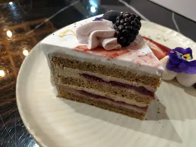超驚喜甜品🍰每次嚐新水準高💯 yaya1222等級42022-02-28439 瀏覽 關注 今次又試咗另一啲款式🤩仲食到甜品 真!開!心! ✨𝙽𝚒𝚣𝚎𝚗 𝙿𝚞𝚖𝚙𝚔𝚒𝚗 𝙱𝚞𝚛𝚐𝚎𝚛 $𝟾𝟶一禪南瓜漢堡配番薯條:由南瓜🎃 燕麥 純素沙律醬洋蔥🧅 酸瓜組成的漢堡🍔另有蕃薯🍠條 呢款漢堡份量同大啡菇漢堡相近 不過係用咗麵包 所以感覺比較飽肚喔 個人更喜歡這個🙈 ✨𝚃𝚛𝚞𝚏𝚏𝚕𝚎 𝙼𝚞𝚜𝚑𝚛𝚘𝚘𝚖 𝚀𝚞𝚒𝚗𝚘𝚊 𝚁𝚒𝚜𝚘𝚝𝚝𝚘 $𝟾𝟾黑松露素芝士藜麥飯:雖然真係有點溜 但都係好鍾意食😆 ✨𝙴𝚊𝚛𝚕 𝙶𝚛𝚎𝚢 𝙱𝚕𝚊𝚌𝚔𝚋𝚎𝚛𝚛𝚢 𝙲𝚊𝚔𝚎 $𝟻𝟶伯爵茶黑莓蛋糕🍰:巨好吃‼️蛋糕口感紮實 看似小小一件 但高身 所以食完2個ᴍᴀɪɴ之後2人再分著吃已經很撐了 我哋無再叫咖啡ʟᴜ☕️蛋糕茶味很濃 甜度剛好 正☺️ 今次有驚喜🌸下次一定會再試其他甜品😌 Follow my instagram 📍tr.eatday…查看更多+ 7以上食評乃用戶個人意見 , 並不代表OpenRice之觀點。讚好分享超驚喜甜品🍰每次嚐新水準高💯 一禪 https://s.openrice.com/QrbT0nHv200檢舉 張貼 評分4味道4環境4服務4衛生4抵食推介美食伯爵茶黑莓蛋糕$50伯爵茶黑莓蛋糕$50伯爵茶黑莓蛋糕$50伯爵茶黑莓蛋糕$50伯爵茶黑莓蛋糕$50一禪南瓜漢堡配番薯條$80一禪南瓜漢堡配番薯條$80一禪南瓜漢堡配番薯條$80一禪南瓜漢堡配番薯條$80黑松露素芝士藜麥飯$88黑松露素芝士藜麥飯$88日式烤野菜咖喱配椰菜花飯用餐日期2022-01-07用餐途徑堂食人均消費$110 (午餐)