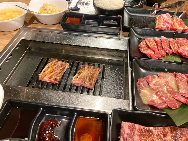 去過日本嘅人都知牛繁係日本已有好多分店,包括東京、神奈川、千葉、埼玉縣等。而香港荃灣呢間係最近新開,地方闊落,坐得舒服。Lunch set好抵$88起包前菜、湯、白飯同飲品。我同朋友點左兩份lunch set係元氣牛小排$同元氣牛五花,加$78追加左特上牛空腹肉,比餐牌就咁叫平。另外仲單點叫左極尚雪降和牛肩翼板扒 ,個人其實最鍾意呢款,因為油脂分佈好靚,而且和牛油香味濃郁,令人回味。用上日本煤氣爐,同一般圓形網燒烤爐唔同,火力會更勻循,所以牛肉平均燒起2-3分鐘已經熟。…查看更多