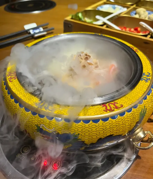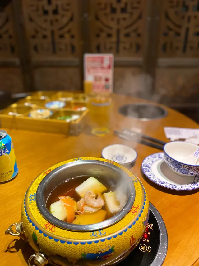 滾得囍宮廷秘藏鍋物,位於北角,超級近地鐵站好方便,入去就係宮廷式裝修,古裝劇咁👘主打一人一鍋,一班朋友黎都可以揀到自己鍾意既湯底,依度咁多特色湯底就啱晒👍🏻飲杯竹蔗茅根就開始!午市打邊爐都可以好正,火鍋套餐咩都有,光緒瑤柱冬瓜濃湯鍋,一落湯就飄煙😳好似仙境咁,配住幾舊冬瓜好特別既感覺✨視覺效果贏左,A5黑毛和牛,睇油花就知真和牛,入口會溶🤤牛味濃,好正,日本廣島蠔,大大粒,蠔味濃到一個點,好高質🌟食啲唐生菜,依個湯加埋少少海鮮好有冬瓜盅feel😆手打黑松露惹菌鮮蝦丸,彈牙爽口,黑松露味幾出👏🏻紫皇蟹粉豚肉餃,餡料幾多,味道唔錯,百花釀豆腐,吸左湯幾好味😋出前一丁,就梗係要配埋沙爹醬同和牛,好正既享受😎一人一鍋特別爽!🍲 令人好想試晒啲湯底🙌🏻火鍋同食材都真係色香味俱全,高質既邊爐,聚會慶祝都啱晒🤗…查看更多