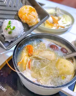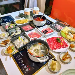 一人一鍋台底火鍋全血和牛+北海道四元豚吃到飽套餐澳洲石灰岩全血和牛以全天然放牧餵飼養血統優食代表每隻和牛都由純種公牛及乳牛配種而成更得到「2024年澳洲全血和牛大賞」銅獎牛味濃郁,油花分布好高質!日本北海道四元豚腩肉和梅花肉兩款肉質都好嫩,肥瘦適中!我比較喜歡梅肉肉質口感豐富肉類仲有:澳洲200日殼飼牛、澳洲純和牛、台南花雕雞、澳洲冠冕草飼羊等海鮮種類都好豐富:生蠔、瀨尿蝦、大頭蝦、大蜆、帶子全部都好新鮮,生蠔同帶子都超大隻食多幾round都回番本仲有牛舌、蝦滑、花枝滑和特色串串如:芝士和牛棒、金菇和牛串、豚肉露相荀串等仲有好多款台式小食:冰釀梅汁番茄、滷水牛筋、青麻椒辣魚皮、藤椒虎皮雞抓、金錢肚、台灣鴨血、小香腸、地瓜球、鹽酥雞、甜不辣、三星蔥燒串花枝、獅子球、炸蝦球等仲多選擇過台灣夜市好多款都好正宗和惹味仲有滷肉飯、手工麵等湯底有辣有唔辣揀左椰子雞和台灣麻辣鴨血鍋兩款都好夠味同好香飲品方面更有任飲生啤酒、ASAHI 汽泡果酒、珍珠奶茶、芝士奶蓋、手打檸檬茶等各式台式手搖飲自助區有各式新鮮蔬菜和丸類等火鍋料還可以自己裝開心果味軟雪糕CP值超高!難怪平日晚市都好多人等位…查看更多
