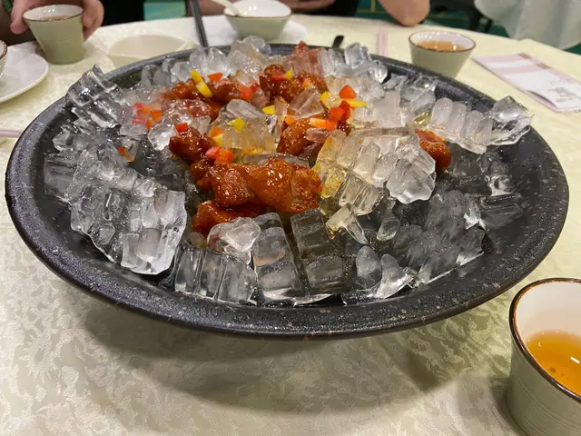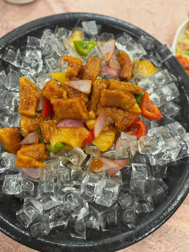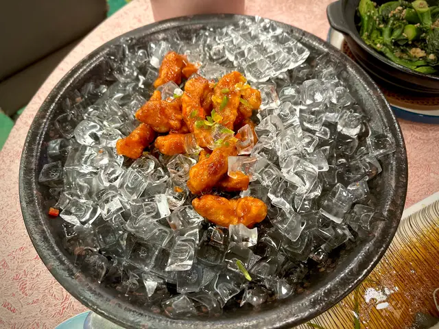 每逢來到旺角,幫襯的總會是放題、cafe,今次朋友忽發奇想要食中菜,就臨時找到這間樓上酒樓。原以為樓上舖應該沒什麼人氣,沒想到未入內已見場內坐滿8成客,相當意外,更加期待一會兒的中式盛宴🍚——————————🔸冰鎮咕嚕肉 $128之前在其他餐廳食過,相當有驚喜,見到這裏有當然要試!一上桌已覺驚喜,超大的碟裝有大量冰塊,咕嚕肉被半掩埋,再以三色甜椒作點綴,視覺效果💯咕嚕肉外冰內熱,就算被冰蓋過,外皮亦不會因而變軟,仍然保持脆口鬆化,無骨更是加分!🔹客家酸菜海爐魚片 $128沒想到酒樓居然有酸菜魚,湯底酸中帶辣,柔和不嗆;魚片薄而嫩滑,不過建議多煮幾分鐘,有幾片可能不夠熟,魚皮略韌~🔸芝士流心脆蝦球 $168侍應推薦,聽講是大廚最近的得意之作👨‍🍳脆脆做成小碗裝,裝有水果沙律,加上一粒飽滿的脆蝦球,一咬爆汁,外層是彈牙的蝦滑,中心是流心的芝士汁,類似芝士龍蝦伊麵的湯汁,不會過濃,蓋過蝦肉的鮮美🦐🔹川味麻辣雞煲 $138以為此雞煲是彼雞煲,但原來不是😂這個感覺更似微辣的豆豉雞煲,雞肉嫩滑香口,相當惹味,但如果做得更麻更辣,加點芫荽就更好了~🔸大良脆炸鮮奶 $98驚喜之作!炸皮香脆,內裏香甜,有趣的是師傅加了少許香蕉蓉,甜甜軟軟,充滿香氣,有點睛作用🥰菜式整體表現不俗,價錢亦合理,唯廚房人手不足,上菜速度過慢,希望下次再來會有改善啦~…查看更多