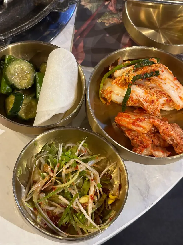 喜來稀肉的燒肉出名,其實它的午市一樣精采。午市餐牌選擇頗多。有烤肉、湯、飯或烏冬,還有迷你版煎餅或年糕。食燒肉的話有自助前菜自己加,即使是午市套餐,一樣跟可添加的前菜,坐下便送上4碟前菜,食完可以再加,好抵食。🏅烤豬肉定食Jung-Chan Box($99)這份定食用木格盛載,感覺華麗。主食是BBQ豬/牛/雞,有5款選擇。另送6款拌菜、生菜、白飯及湯。用生菜包着肉類,加喜歡的拌菜和醬料,不用自己燒烤,方便又好味。🏅喜來烏冬+蟹籽飯團($80)雖然無肉,但湯底清甜。配料有腐皮、紫菜、大蔥、大蒜和天婦蘿碎,煙韌爽滑的烏冬加上熱辣辣湯底,溫暖又滋味蟹籽飯團外觀不完美,卻給人韓國家庭料理的溫馨感覺。咬一口還是暖的飯團,軟糯的米飯與爆炸的蟹籽,口感豐富,忍唔住又咬多一口、兩口……🏅迷你海鮮豬肉泡菜餅($40)表面非常脆口,內裏的泡菜柔軟,真正是外脆內軟。🏅梨汁($8)有少許果肉,清甜好飲。…查看更多