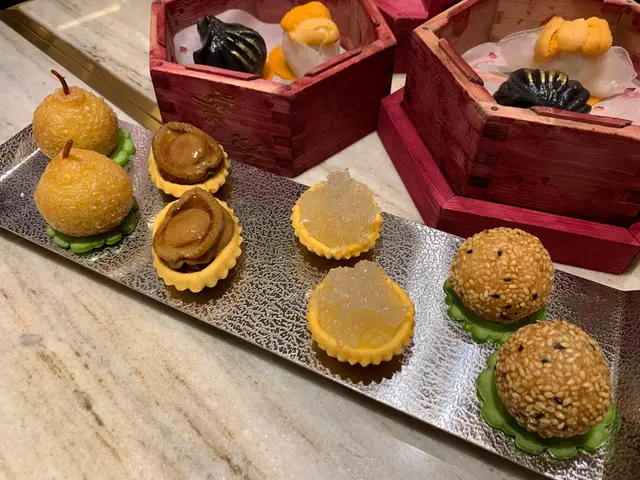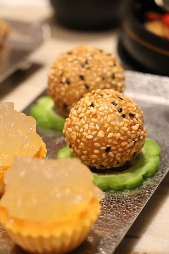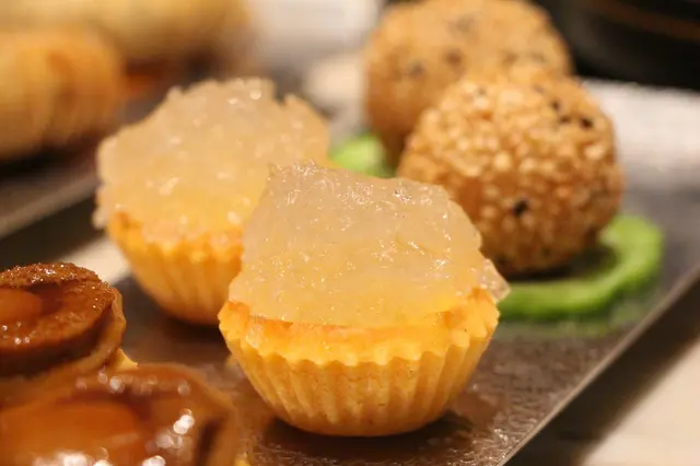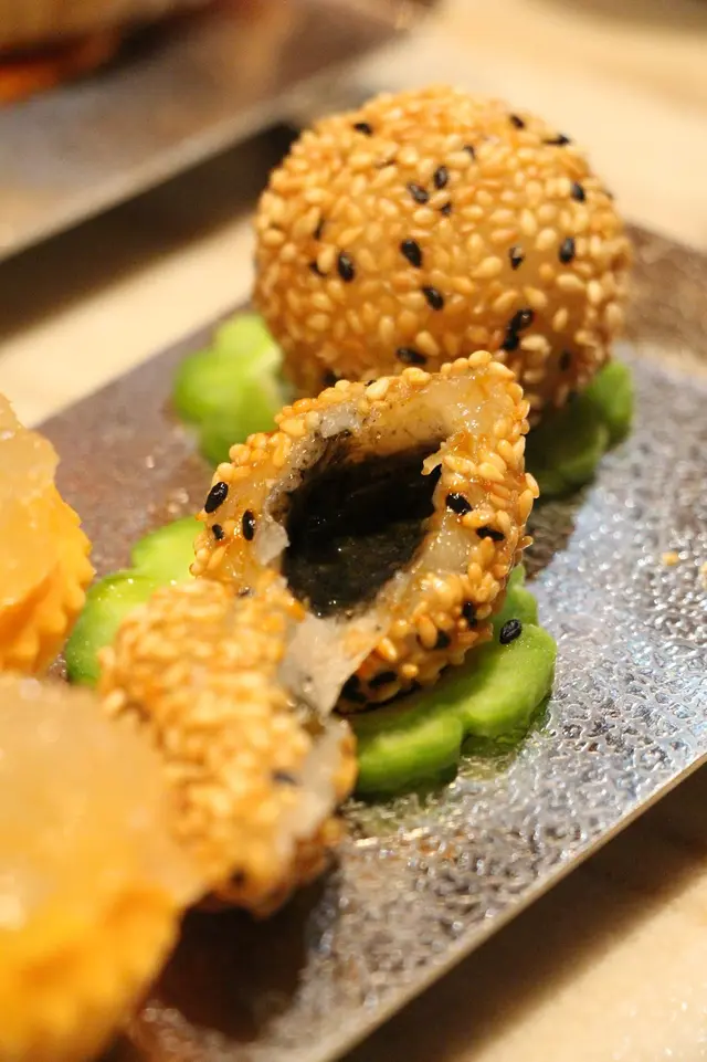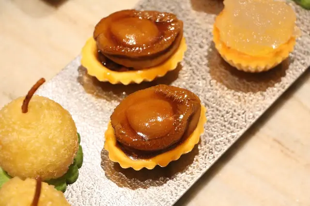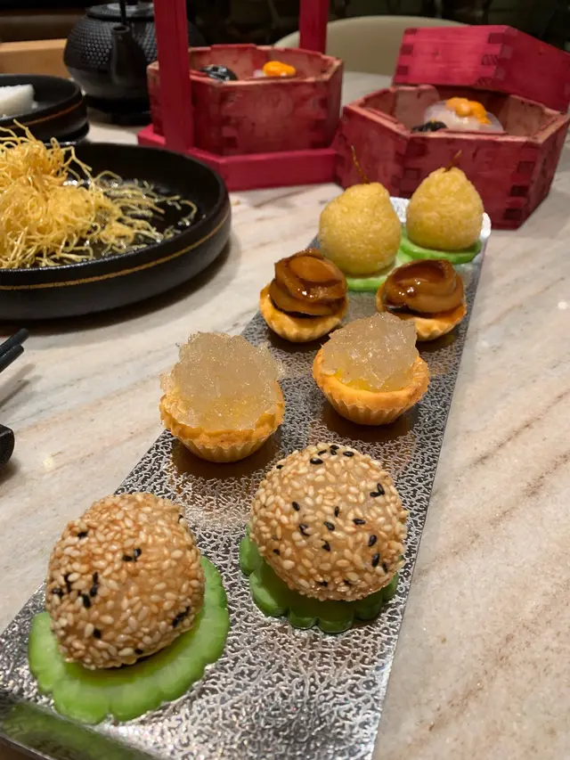 第三次黎到「點心廊」,每次黎都『創作六式拼盤』,因為真係最抵食!六款點心都只係$198。金箔墨汁蟹粉鮮蝦餃烏黑嘅墨汁皮,加上金箔嘅點綴,咬開蝦餃,就見到有好大隻鮮蝦肉同橙黃色嘅蟹粉係裏面,真係好真材實料呀!海膽鳳眼餃海膽都算鮮甜,蝦餃裏面有原隻爽口彈牙嘅鮮蝦,正!😏黑白芝麻流心煎堆仔黑白芝麻炸成煎堆仔嘅外皮,芝麻流心好正,香味十足!黃金啤梨鹹水角啤梨嘅造型好精緻!外層炸得香脆,內餡有豬肉碎、蝦米、冬菇等,鹹香味美!👍🏻原隻鮑魚雞粒酥預先炆煮過嘅鮑魚軟腍入味,不錯吃!一口燕窩蛋撻好矜貴嘅燕窩蛋撻!😍燕窩份量毫不吝嗇,曲奇撻皮鬆化,蛋香十足。…查看更多