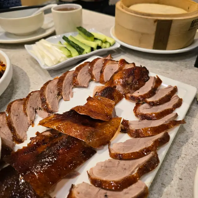 放假到訪𝐀𝐈𝐑𝐒𝐈𝐃𝐄,想吃中菜見這裡有片皮鴨就來試下午𝟑點無需等位,被安排坐窗邊位置,環境不錯呢▸ 北京填鴨(半隻)$𝟏𝟔𝟖片皮鴨賣相不錯,份量好夠,而且連肉的都好多呢皮脆肉嫩,包摩摩皮連京蔥及青瓜條吃不會太油膩整體好有驚喜,難怪基本上每枱都有點呢,推薦.ᐟ▸ 秘製杭州骨 $𝟖𝟖同樣大大份的,肉質好嫩滑濃郁的酸甜醬汁很適合送飯▸ 酸辣湯麵 $𝟓𝟐湯麵份量亦很多,辣度剛好,酸酸辣辣很惹味內有木耳、筍絲等配料令整體口感豐富,不錯…查看更多