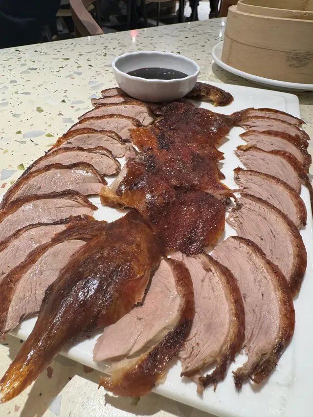 今日約咗朋友去airside食晚飯,好彩早咗入去,唔使等位。因為之前見到有人食北京填鴨,就想試下,所以今日必叫。- 北京填鴨 (半隻)賣相都幾好,不過唔係全部都係鴨皮,係皮連肉,冇咁油膩。夾埋餅皮,配菜一齊食,好正。餅皮會好快凍咗,一定要快食。- 黃金南瓜好多咸蛋黃醬,包實南瓜,外脆內軟,又有流沙既口感。- 避風塘大蝦有少少辣,鑊氣十足,好惹味。啲蝦新鮮彈牙,外殼炸到香脆,可以連殼一齊食。食咗太多重口味野,所以一人叫咗一杯鴨屎香檸檬茶,味道清香,中和下啲味道。小菜味道好好,份量足,不過2個人share食,真係飽到有啲辛苦,下次要約多幾個人一齊食。有啲位冷氣太大,坐坐下會凍,同埋食物凍得好快。…查看更多