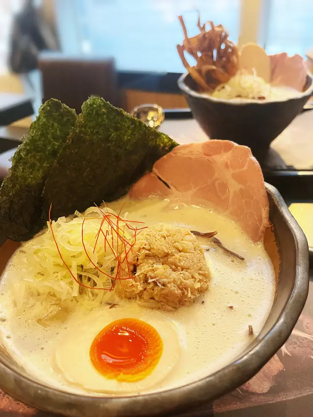 金鶴拉麵主打雞白湯底,全港有5間分店,十分方便✨今次黎到最新銅鑼灣分店,店內充滿和風感覺,佈局優雅舒適🇯🇵迫不及待啦!定番ラーメンをください!🍜❥ 極濃雞白湯拉麵($138)極濃版本採用原隻雞熬煮8小時而成,乳白湯汁濃厚鮮美,對比主流豚骨拉麵更為淡麗~配料方面亦好豐富,先有上枱就好奪目嘅炸牛蒡,口感微脆微韌,浸落湯食又係另一番滋味。另外兩款肉類亦都好吾錯, 雪白雞肉軟冧易入口,豚肉叉燒肥瘦均勻帶肉香。溏心蛋濃郁流心又有鰹魚香。❥北海道濃厚蟹湯拉麵($138)蟹湯都好出色🥹🫶🏻精華湯底濃而不鹹,啖啖鮮甜美味,而且蟹肉份量毫不吝嗇,絲絲蟹肉融入口腔,令我好著迷❣️加上麵條彈性十足又掛湯,麵同湯完美結合再呈現✨❥雜錦串燒拼盤($188)拼盤串燒一共8款,分別有免治雞肉、黑豚肉腸、雞軟骨、豬頸肉、五花腩、雞腿肉、雞腎、雞中翼各一串🍡全部火喉都控制得好恰當,鹽香亦調味更顯食材原味。特別推薦係免治雞肉👍🏻微甜燒汁輕輕掃過表面,雞肉鬆軟嫩滑,脆骨混合係入面口感過癮。另外五花腩都好好味,油脂經燒製後所剩無幾,所以肥肉部分食落不會油膩,仲好有鹹香🐽…Read More
