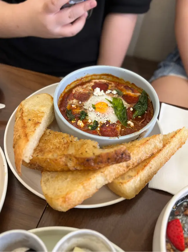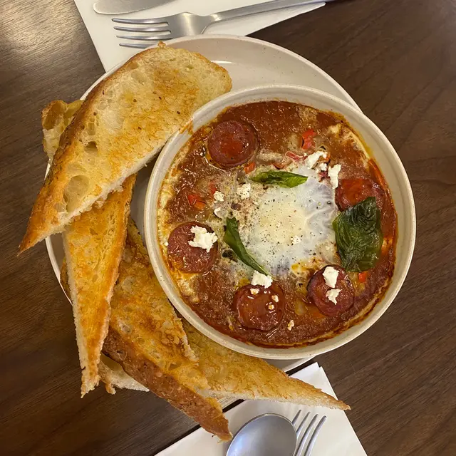 YOI Coffee & Bakery 要加一~味道評分:☄️(highest_surprise)/☀️/🌤(pass)/⛅️/💨(lowest)☀️北非沙卡蔬卡配意大利香草麵包 $108麵包外脆內軟,好好食!香料味重,食到個汁入面係由唔同既配料製成😎有層次感好適合重口味既你地😜☀️慢煮嫩雞胸羅勒醬香草麵包三文治$98兩層麵包都有塗羅勒醬,誠意十足💓見到雞胸尼兩隻字本身都有啲卻步(因為驚好鞋)但完全唔會 反而好滑😋仲要入味💥超級surprise!!!!!🌤開心果修女泡芙 $68造型超少女心💕個cream好滑,Nuts味好出,外皮超脆☺️美中不足可能係外皮有少少燶左🙃❤️‍🔥餐廳設計簡潔文青,令人好舒服❤️‍🔥chill半個晏晝完全冇問題…查看更多