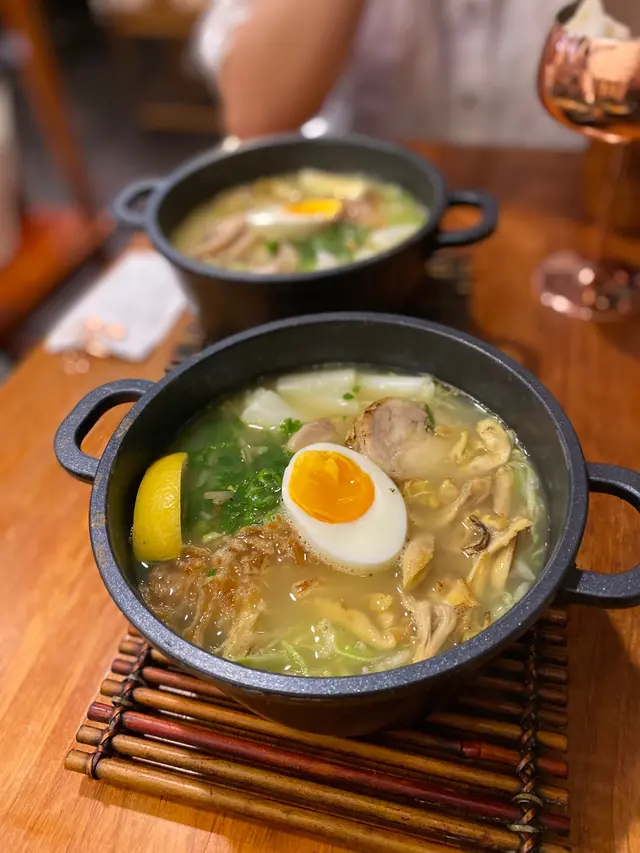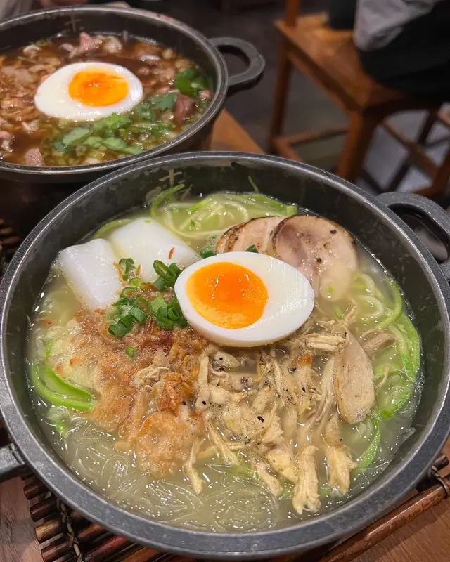 一坐低首先有杯色彩繽紛嘅蝦片作爲開胃小食,仲有隻靚靚香檳色嘅杯裝住,成件事即刻好少女 😍😋 十三么 ~ 有炙燒手撕雞配雞叉燒,個湯偏清淡,不過個炙燒手撕雞焦香味好濃,好惹味 🤤😋 十三飛 ~ 有安格斯牛肩胛配牛肋條,味道相對濃厚,牛肋條好淋好入味,湯入面有三條腸粉,但索唔到湯汁,建議連湯食有味道d~😋 西多雞翼 ~ 炸到金黃色剛剛好,而且好夠脆口,如果有多d蜜糖就更加好啦 😍第一次食粉絲拼米粉,口感原來又幾特別,d麵少少淋得嚟又會帶點煙韌 👍🏻 另外個湯入面加咗青檸/檸檬,令個湯清新d無咁膩!下次如果唔駛再排隊嘅話會想試埋個鵝肝煎蛋撈飯!…查看更多