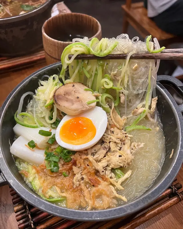 Really hearty chicken noodle soup that’s filling and delicious. I waited about 15-20min towards the end of lunch time for a table on the weekend. Service was relatively fast once seated and my iced tea and noodles came to the table within 10 minutes after ordering. The noodle soup was well seasoned and filled with lots of different ingredients. I ordered the 十三么 Lady 13 Chicken Noodle which had shredded chicken, thick cut chicken, vermicelli, rice noodle, rice roll, green veggies and half a soft boiled egg. The chicken soup was flavourful with a hint of white pepper. Total cost was less than 80HKD, highly recommend.…查看更多