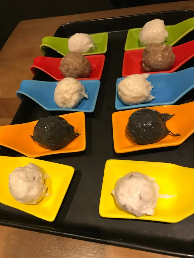 - 十全大寶丸- 自創爆芝響鈴- 紅薯粉眼闊肚窄,臨尾加多個「自制蟹粉蟹肉雲吞」,好好食!食到飽晒食,都一樣覺得咁好食😂十全大寶丸分別有:1/ 手打生拆蟹粉墨魚丸 (無比較無傷害,唔夠雲吞個蟹粉香)2/ 手打黑松露墨魚丸 (激讚!咬開個下啲黑松露味湧出來)3/ 手打黃金海膽黑墨丸 (就係平時嘅海膽丸,料足,一咬即噴😂)4/ 手打香煎鵝肝蝦丸 (唔太覺有鵝肝🤭)5/ 手打芝心牛丸 (又係一咬即噴,小心辣親😂)激讚嘅自制蟹粉蟹肉雲吞!啖啖蟹肉,蟹粉味都夠