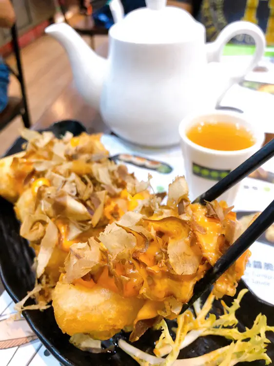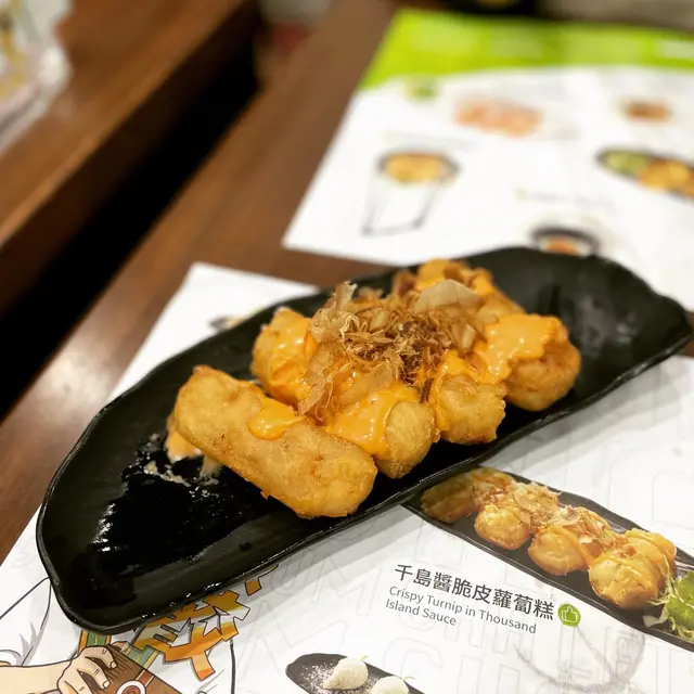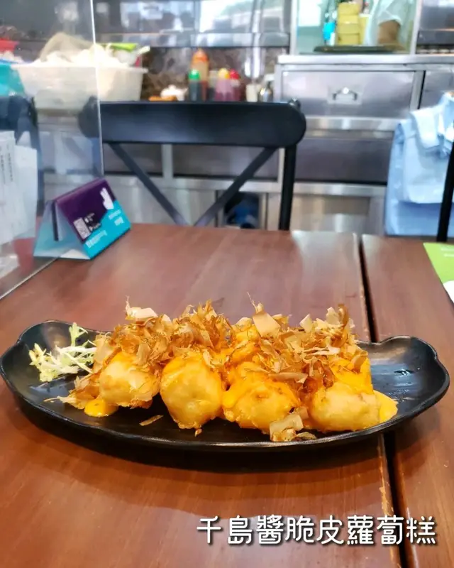 中式蘿蔔糕配西式千島醬,再加上日式木魚絲,真係非常創新。估唔到原來可以咁夾。我鍾意❤️