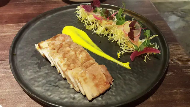 星期五晚,無book位,大約8點左右去到,2個人唔洗等位。2個人叫咗3樣食物:- 我們家鄉的環形天橋 $108(薯仔煎餅配泡菜、五花腩、椒絲及香葉)- 升上神仙臺 $128 (五花腩片配特製醬油)- 海浪覆蓋的岩石島嶼 $128 (大蒜油意粉配海膽蘑菇泡沫醬)飲品2樣:- 藍莓米酒 $98- 水果茶(唔記得咗名)$唔記得合共大約 $500開始來第一味:- 多脂肪- 普通腩肉味,我覺得一般- 同埋我唔覺眼佢有比過個咩特製醬油第二味:- 重泡菜味,小辣- 紅椒絲,小小辣- 個醬唔洗釀黎都得- 油膩,食到多油- 偏脆同食食下容易散開- 適合重口味好煎炸食物人士最後一味:- 重口海膽磨菇泡沫醬,但唔講唔覺似海膽味- 似黃色嘅磨菇忌廉意粉- 好食整體來說,可以一試,食物質素其實ok,環境也不錯,只係賣呢個價錢嘅食物無令人有眼前一亮嘅感覺。同埋,佢個gimmick 可能係想改啲吸引人嘅菜式名,但係作為顧客我覺得啲名一啲都唔吸晴,咁多字仲要睇到人有啲眼花撩亂。建議想改好名寫好餐牌,可以參考cwb 有間叫mamaday 嘅餐廳,人哋改嘅名係有趣又易明,例如:唔好咁大期望意粉,睇個名你都知呢道菜係食意粉,而唔係好似呢間餐廳咁,睇咗個靚名「海浪覆蓋島嶼」,我真係唔知呢味菜係會食乜,情況就好似同無睇無咩分別咁。重點係唔講唔覺自己原來係食緊韓國野,我覺得當佢整意粉呢啲西方食物仲好食過韓國食物嘅時候,呢間餐廳就變咗無乜特色風味可言,所以我覺得好普通。又或者係我無咩眼光,唔太識欣賞唄。…查看更多