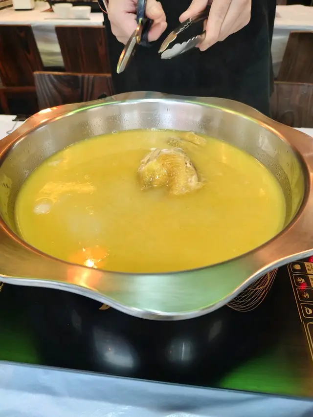 平日夜晚黎到尖沙咀,決定食火鍋,上網搵到呢間花膠雞湯底專門店好出名,即刻黎食😋我地9點先去到,竟然超級爆場,再一次證明呢間野有幾好食🤩 大家想食記住book定位先👍🏻揀左要花膠雞湯,店員就會即刻送上一大兜湯底,滾熟左就通知佢地,會幫手剪雞件👍🏻🥰個湯晶瑩剔透,真係好足料!花膠又有幾舊,每舊都超長超大舊😍 我地飲湯差唔多都飲左一大半。。。🤣 實在好鮮甜,一d味精都冇,真係太原汁原味太吸引🥹 平時真係好難飲到,所以飲湯都飲到飽左!🙈我地叫左6款食材,終於開始淥野食啦🤣1️⃣手切頂級安格斯牛肉🐮 $2982️⃣牛骨髓🐮 $653️⃣胡椒豬肚貢丸(六粒)🐷 $554️⃣唐生菜🥬 $435️⃣爽脆牛黃喉 $656️⃣鮮嫰荀尖片 $43呢度嘅牛肉好靚,色水、油脂分佈都arm arm好,真係好食,有少少咬口,食左幾片都已經好滿足😍其他食材都好食,但最令我地驚喜嘅竟然係生菜😎,真係特別有菜味🤣,我好少會係咁食菜🥹,成兜菜我地係清晒😳😋呢度嘅丸都好正,超彈牙多汁,好真材實料👍🏻叫左杯百香果梳打 ,都幾好飲👍🏻 真係有果肉喺入面!呢度嘅醬料選擇都好多😋我地食到11點都仲有其他食客,仲要喺一幢每層都係食肆嘅大廈競爭,證明呢間餐廳真係好唔錯👍🏻😋…查看更多