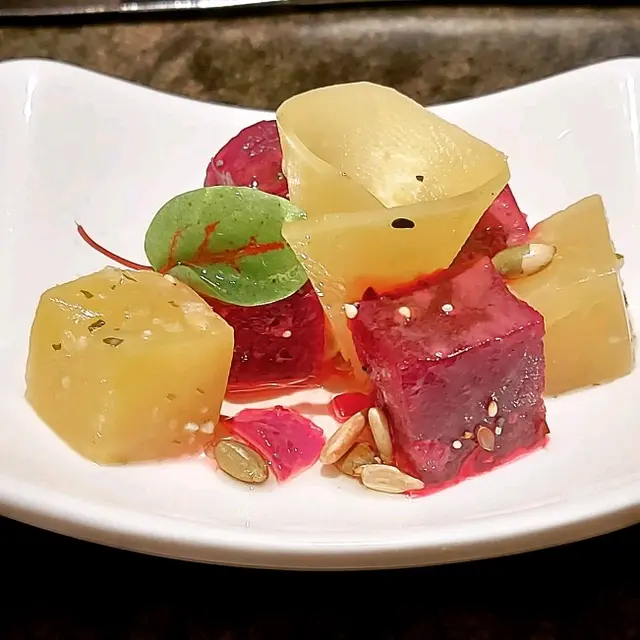 一入去已經好有格調🍴法國高級餐廳feel有得揀Course dinner set或A la carte我哋每人叫咗個4 course dinner set包entree、餐湯、主食、甜品,好豐富▶️ 餐包 bread最鍾意餐廳有餐包~似ciabatta bread,個樣OK,旁邊有牛油可惜嚟得太早,食嘅時候凍咗唔係外脆內軟,好粗糙硬身🙁有啲失望▶️ 空運新鮮生蠔 配乾蔥紅酒汁及珍珠青檸 6pc ($258)唔跟餐,散叫係人生中第二次食生蠔🦪味道鮮甜多汁,有啲苦苦地咁乾蔥紅酒汁淡味,鍾意加咗青檸酸酸地,更fresh▶️ 南瓜籽楓糖紅菜頭沙律 beetroot salad平日少食紅菜頭,屬superfood雙色紅菜頭切到一粒粒,以楓糖作coating,再灑上芝麻粒、鹽、香草底部有紅菜頭汁同橄欖油,plating令簡單嘅材料變得不平凡❤️紅菜頭甜甜地,偶爾有鹽嘅鹹味中和返微爽口但唔生硬,仲有一粒粒南瓜籽同葵花籽咬吓,增添nutty風味估唔到份量幾多,食曬好飽肚▶️ 牛肉他他 配法式千層薯 Steak tartare (+$28)牛肉他他冇想像中咁生,口感似生吞拿魚,用wasabi蛋黃醬調味,唔錯法式千層薯好食🥔薯仔味香,每層夠薄身所以特別脆口▶️ 香煎帶子配粟米濃湯 Scallop sweet corn soup (+$28)碟上放上一粒巨型帶子,旁邊有燒過嘅粟米粒、香蔥等侍應即場倒入粟米湯,超有儀式感!湯好濃厚杰身,粟米味勁鮮甜🌽唔講以為加咗糖😂原來係加入咗椰奶 (隱藏食材)配上粟米粒更有口感,其他調味料令湯味道上豐富啲巨型帶子煎得啱啱好,肉質鮮嫩彈牙,甜中帶鹹▶️ 黑松露牛肝菌蘑菇忌廉湯 Porcini truffle mushroom soup有真材實料嘅牛肝菌片蘑菇味香,帶出淡淡黑松露味另外仲有香草同洋蔥不過飲完粟米湯之後覺得呢個比較淡味同埋冇咁creamy🙈▶️ 炭烤原條鱸魚配羅文生菜苗沙律 Charcoal grilled whole sea bass真係原條鱸魚連皮切一半攞去烤🐟底部係青醬同香草配法式酸奶油(creme fraiche),同鱸魚超夾味本身鱸魚已經用鹽醃過,食落又鹹又酸,我自己覺得濃味咗少少添🤏🏻然而鱸魚肉質滑嫩多汁,冇骨啖啖肉,外皮薄脆香口,睇得出功夫唔少羅文生菜苗沙律就平平無奇🥬▶️ 香煎慢煮牛柳伴日本南瓜杏鮑菇 配牛肝菌牛肉原汁 Beef tenderloin慢煮牛柳粉嫩,肉質軟腍唔韌,不過未算好juicy醬汁偏淡味🐂唔會蓋過牛肉本身味道伴菜係燒過嘅日本南瓜同杏鮑菇,望落幾熟幾甜咁▶️ 龍蝦尾扁意大利麵 Lobster tail tagliatelle (+$98)醬汁呈金黃色,令意粉散發光芒💛龍蝦尾好大條🦞上面仲有三文魚籽龍蝦尾果然美味😋肉質爽彈味道鮮甜意大利麵就比較一般,始終唔係手工麵,唔夠煙韌,不過醬汁ok▶️ 美國16安士USDA安格斯肉眼牛扒 (+$158)個牛扒接近兩隻手板咁大😯旁邊有蘆筍作伴菜,連蘆筍都特別粗,咬落嚓嚓聲好爽口▶️ 提拉米蘇 Tiramisu用透明杯裝住,賣相不及味道Mascarpone cheese夠黏滑,酒味香濃而唔苦中間係沾滿咖啡嘅海棉蛋糕🍰真係好似一嚿朔水海綿😂啲咖啡會滲返出嚟鍾意佢咖啡同酒味都食到,層次分明▶️ 朱古力撻 Chocolate tart半個朱古力撻配上雲呢拿雪糕,旁邊有Oreo曲奇碎,賣相精緻👍🏻朱古力撻撻底香脆,似牛油曲奇用上黑朱古力🍫香濃得來唔太甜雲呢拿雪糕配Oreo曲奇碎=Oreo雪糕,係兒時至愛整體兩款甜品都好食!-食物超高質,由前菜道到甜品都冇得彈最出色係香煎帶子粟米湯,之後係兩款甜品同龍蝦尾💗感覺海鮮比扒類出色內在環境舒服,燈光暗得來有格調,影相出嚟特別靚📸有自動舞台燈光效果想讚係呢度服務💯知道我想影倒粟米湯嗰下會等我預備好先😂上菜有次序而等候時間唔長,會適當時候收餐具同換碟慶祝生日仲有即影即有影相服務,侍應亦好醒目咁自動點蠟燭上蛋糕🎂睇得出經驗豐富偶爾想食餐好嘅絕對可以試呢間!尖沙咀都有分店,Menu少許唔同但相信一樣咁有質素(經OpenRice訂座,叫course set仲有75折!)…查看更多