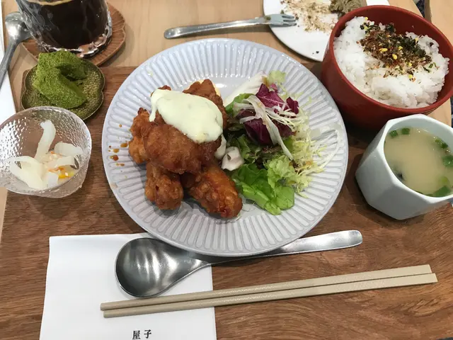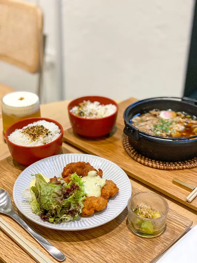 :屋子📍ɢ𝟷𝟼, ᴍᴏɴᴛᴇʀᴇʏ ᴘʟᴀᴄᴇ, 𝟸𝟹 ᴛᴏɴɢ ᴄʜᴜɴ sᴛʀᴇᴇᴛ, ᴛsᴇᴜɴɢ ᴋᴡᴀɴ ᴏ米白色日系風嘅裝修,已經佈滿聖誕裝飾,門口有榻榻米座位,環境闊落坐得都幾舒服,定食選擇都幾多,仲有好多聖誕限定嘅甜品🐥南蠻唐揚雞定食 $𝟷𝟷𝟾定食套餐有味噌湯、前菜、米飯、甜品&飲品炸雞肉質嫩滑 仲有搭配埋沙律菜南蠻醬出色 有碎蛋粒同埋洋蔥🍜壽喜燒牛肉烏龍麵 $𝟿𝟾壽喜燒配料都幾足 有大蔥 芋絲 豆腐 冬菇 魚蛋&牛肉烏冬掛汁好味 大蔥同壽喜燒湯簡直係最好嘅朋友略嫌牛肉浸得耐咗有少少柴🥚三文魚子明太子玉子燒+$𝟺𝟸玉子燒上面鋪上滿滿嘅三文魚子淋上明太子醬 好食定食set是日甜品🍰戚風蛋糕配牛乳ᴄʀᴇᴀᴍ甜品好出色 戚風蛋糕好sᴏғᴛ最驚豔係個牛乳ᴄʀᴇᴀᴍ 好濃牛奶味🥛🥤凍白桃烏龍茶🥤凍西柚冰茶…查看更多