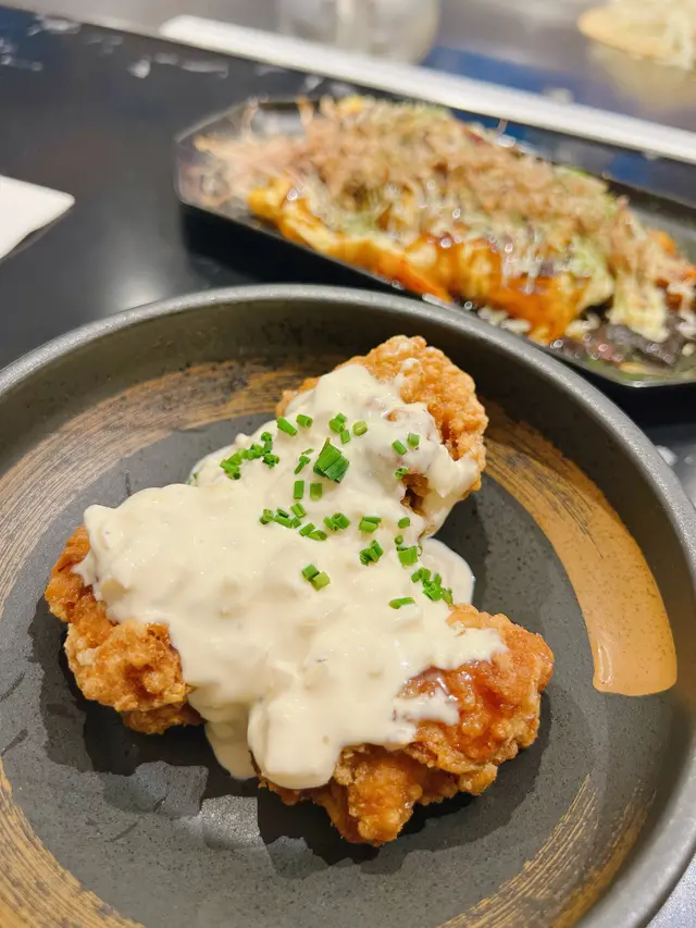 作為一年先去得一次旅行嘅社畜,年頭去完東京,食左文字燒先發現原來我哋一家都更中意大阪燒。所以今日出到啟德就即管試下呢間賣廣島燒同大阪燒嘅御好燒餐廳。午市套餐叫左一個廣島燒套餐同大阪燒套餐廣島燒套餐跟日式沙律,正常。大阪燒套餐跟兩件南蠻炸雞,醬汁同南蠻沙律醬都係偏正宗多於港式,炸雞本體都熱辣辣多汁,有驚喜。醬汁對味,新鮮整起都幾好食。但材料就只有蔬,以呢個價錢唔太相宜,但起啟德呢個地段又唔怪得佢。廣島燒無大阪燒咁好食。但頂下癮都唔錯嘅。…查看更多