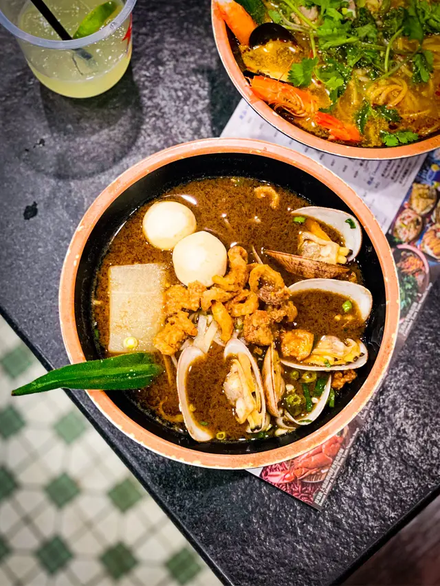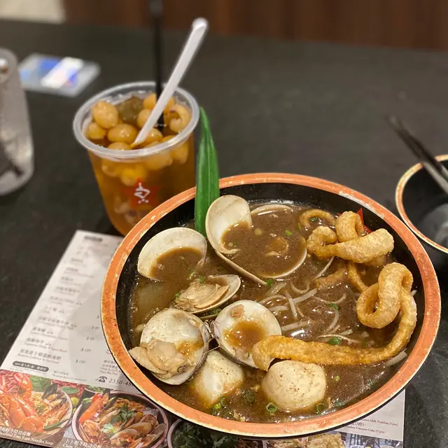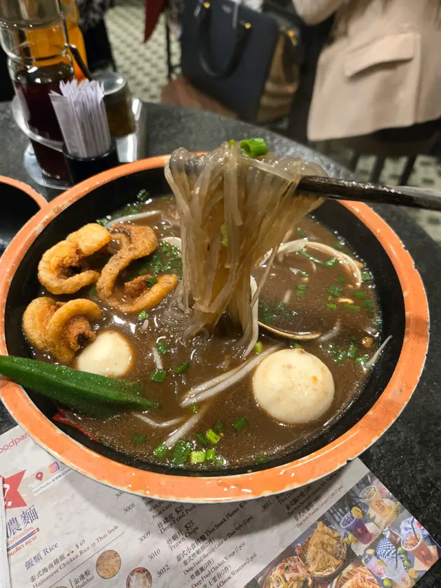 年尾了又是約舊朋友見面的日子👩❤️👩選擇了我至愛的泰國菜 ♥️♥️尖沙咀是我倆的中心地點非常方便👍就在iSquare的細行隔離店內以木質格調為主潔淨光猛,服務員親切勤奮,客流國際化🤭✅卜卜蜆船面份量不小香氣撲鼻,賣相吸引蜆肉大隻鮮嫩,用料豐盛,蘿蔔入味薯粉超級彈牙可口,麵質掛湯✅泰式鳳爪 賣相色彩繽紛,刺激味蕾 甜酸辣味樣樣齊軟骨咬下去極具口感,紫洋蔥爽甜脆口😋✅炸芝士雲吞三角形外邊金黃脆口配上芝士的香軟 🧀整體不油不膩✅蝶豆花特飲 🍹賣相深紫色感覺很夢幻哦 😍✅熱薑蜜 ☕超足料,去寒暖胃,心身靈都得到呵護…查看更多