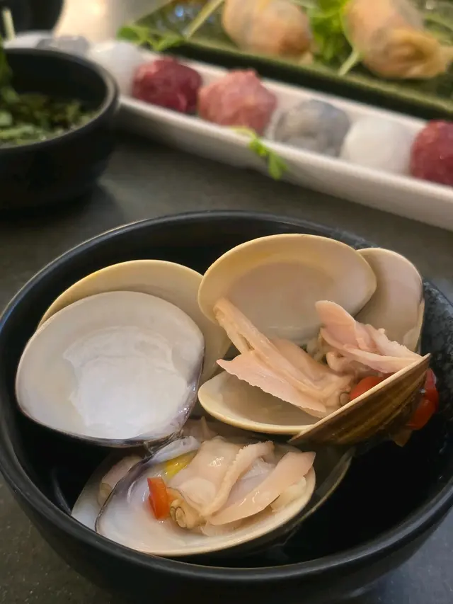 天氣凍,一心諗住嚟食火鍋,點知唔止火鍋好食,刺身更令我驚喜。餐廳裝修新淨,樓上有房,人數多少都cater到,樓下仲設有兒童區可以玩煮飯仔等,啱晒想二人世界嘅父母。 ✦ 卜卜蜆鍋卜卜蜆大大隻、份量多,完全冇沙,鮮甜肥美。湯底另有粉絲、蘿蔔、粟米等配料,好香甜。 ✦ 手打四寶丸有鮮蝦丸、鮮墨魚丸、牛丸同豬肉丸。每款兩粒,蝦丸、墨魚丸鮮嫩,牛丸、豬肉腸味道濃郁,粒粒爽滑彈牙。 ✦ 西班牙黑毛豬肉片紋理清晰、油花分佈均勻,肉味香濃,口感嫩滑。✦ 水餃王半個拳頭咁大隻,好足料,皮薄餡靚。真係有隻鮮蝦喺入面,加埋木耳、肉碎等,口感豐富,好飽滿。 ✦ 石蚌魚刺身第一次食,今晚VIP。石蚌魚新鮮起肉上,上枱時魚頭仲會郁。師傅刀工一流,刺身呈半透明色,味道鮮甜、齒頰留香,口感爽脆嫩滑。配搭柚子酸汁食,更加提昇鮮美。 ✦ 三文魚刺身紋理清晰,片片肥美肉厚,略帶油脂香。 另外仲嗌住大大杯洛神花,酸酸甜甜,可以食更多。好有心機嘅餐廳,值得再嚟。…查看更多