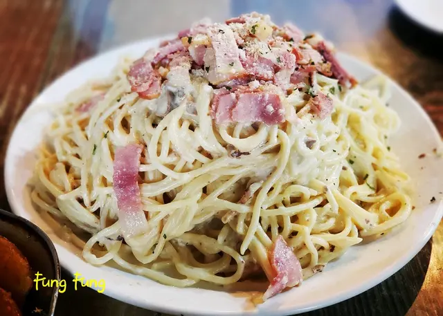 朋友介紹過嚟依間餐廳,我亦都睇過YouTube扒介紹 個名叫做意粉山 ,顧名思義 意粉出名性價比高,所以今日專程嚟打卡我喺下午茶時間過嚟所以冇乜嘢人亦都唔使點等位,入到你有一位哥哥招呼,個性比較隨和,原來點餐要去到收銀機點餐然後俾錢。今期大家都話應該要去試經典卡邦尼意粉,所以諗都唔諗就帶咗個卡幫你意粉,同埋我鴨腿配薯蓉,等咗大概10分鐘到已經上咗菜,分量真係比出邊大好多,而且真係好足料,難怪咁多人會過嚟幫襯。…查看更多