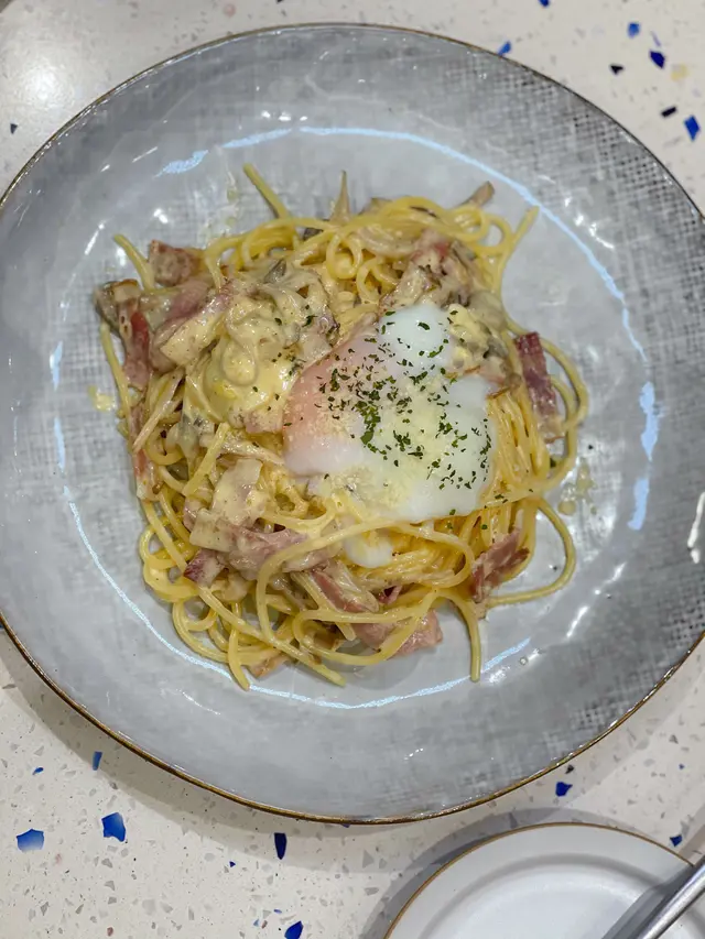 屯門市廣場開咗呢間有得食pancake嘅店之後 終於都嚟咗捧場☺️位於商場三樓戲院對面嘅開放式位置 下午時間嚟到唔係好多人 但都keep住有一枱接一枱客人😉呢到主打soffle 但其實仲有spaghetti sandwich toast salad pancake... 最特別嘅係有個 焦糖爆谷pancake 雖然我冇叫但睇落好似幾吸引🤣 🍮雜莓三重奏梳乎厘 💰92 本身諗緊要原味定雜莓好 最後覺得雜莓嘅味道會豐富啲 所以揀咗雜莓😆三大塊souffle都幾厚身 軟綿綿空氣感十足 仲有好香嘅蛋味😍配埋甜忌廉&果醬 酸中帶甜 仲有粒粒新鮮水果砌得靚靚 草莓藍莓桑莓同香蕉🍓🍌 🍝卡邦尼煙肉意粉 💰72主食方面叫咗卡邦尼意粉 有好多配料 煙肉 蘑菇 仲有溫泉蛋🥚意粉硬度適中 分量嚟講唔係好多 但好creamy同掛汁😊 ☕伯爵茶鮮奶咖啡 💰+32 (原價42)呢度嘅飲品冷熱同價 除咗coffee 仲有non-coffee嘅latte juice soda tea🌸令我意外嘅係 居然附送咗風乾橙片🍊🤭未試過呢個配搭 淡淡嘅earl grey tea+濃濃嘅coffee+酸澀嘅orange 個味道幾特別 🔔另設加一…查看更多