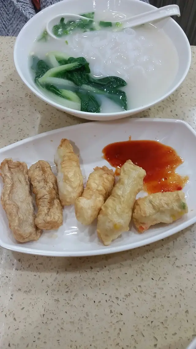 平日午膳甚少機會幫襯廣東粉麵店,一來是分量問題,一碗魚蛋粉不足填飽肥柑子的肚,二來好味的廣東粉麵檔很少有,所以平時午飯都不會將廣東粉麵列為首選,但這次同事介紹下,午飯首次光顧這間九龍城寨墨魚丸專家。我和同事二人,分別點了一客四寶米粉及卷出好味(三款卷類)卷出好味有魚肉卷、蝦卷以及墨魚卷,外皮脆扑扑,內裡非常煙韌多汁,蝦卷內蝦膠質非常濃厚,墨魚卷非常彈牙,而魚肉春卷又鮮味嫩滑,湯底入口清甜不膩,而且分量十足,食完絕對唔會覺得無食過野既感覺。九龍城寨四寶,有墨魚頭、墨魚丸王、牛丸、魚蛋,同事話食唔出墨魚頭同墨丸王分別,只知道好彈牙而無腥味,牛丸亦無加生粉,食落新鮮多汁。…查看更多
