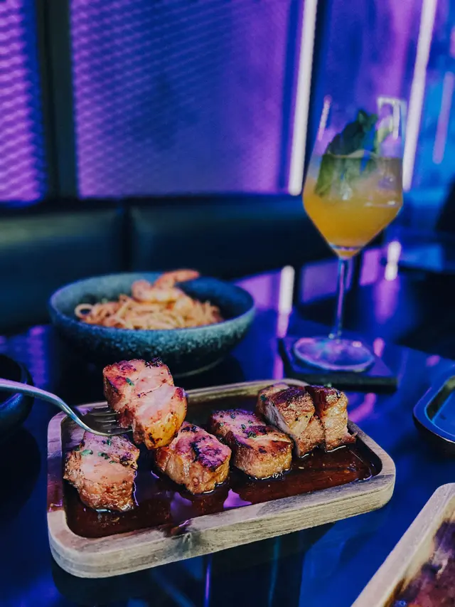 最近到訪由本地樂隊ᴋᴏʟᴏʀ同主持ᴋᴏꜱᴀ等人合資主理既餐廳 x 酒吧𝕠𝕙𝕞,餐廳裝修暗黑型格走ᴄʏʙᴇʀᴘᴜɴᴋ路線,夜晚開齊霓虹燈甚有ꜰᴇᴇʟ。餐廳有兩層,地下係餐廳位置朝啡晚酒,日光時份賣啡、夜晚就搖身一變做酒吧,所以任何時間都適合到訪。二樓係活動場地,可供租用隨時變成私家場,客人可以係到搞活動,交由餐廳提供美酒小食唔駛傷腦筋。呢到亦不時舉辦好似品酒會、ʟɪᴠᴇ ʙᴀɴᴅ ꜱʜᴏᴡ等呢類特別活動。另一方面,呢到有寵物友善用餐區,主人可以帶埋主子到訪,聽聞小柴犬店長周不時會出現係二樓,可惜今日緣份未夠無緣一見。.因為覺得晚上氣氛比較好,所以特意挑選左夜幕低垂時份到訪享受美酒佳餚。晚上以提供各類美酒、小食、甜品為主,正餐主食亦有意粉選擇。.🍝蒜蓉大蝦意粉 💲125唔想太ʜᴇᴀᴠʏ主食叫左蒜蓉大蝦意粉,意粉乾身有三隻大蝦,蒜味濃厚。.🐷厚切完美平衡叉燒 💲80餐廳推薦必試佢地既叉燒同埋慢煮牛舌。超厚切既叉燒肥瘦均稱,係半肥瘦叉既最高境界。叉燒肉嫩,蜜汁香甜,口感軟腍確實係無介紹錯。.🐮慢煮澳洲穀飼牛舌 💲80一樣係厚切既牛舌,用左12小時慢煮方式處理臨上檯前仲會煎一煎,做到面有微微焦香但肉質保持爽嫩唔會乾鞋,係上佳既佐酒小食。.🐔秘製微辣焗雞翼 💲40/3雞翼叫左半份三隻版本,質素絕對有驚喜,新鮮焗起熱辣辣雞翼,皮非常鬆脆而內裡依然留有豐富肉汁,微辣雞翼佐酒一流。.ᴅᴇꜱꜱᴇʀᴛ ᴄᴏᴄᴋᴛᴀɪʟ🥛ᴛᴏꜰᴜ ꜰᴀ 豆腐花 💲128餐廳最新出左4款特色既甜品ᴄᴏᴄᴋᴛᴀɪʟ,全部係港式糖水鋪必備既人氣大熱甜品,包括:「豆腐花」、「芝麻糊」、「紫米露」同「楊枝甘露」。餐廳話最受客人喜愛既係楊枝甘露,而最有特色一定係「豆腐花」。以豆奶、椰青水加ᴠᴏᴅᴋᴀ同ɢɪɴɢᴇʀ ʟɪQᴜᴏʀ整成既豆腐花用傳統木碗呈上,仲配埋食豆花必備既黃糖,好似食緊真豆花一樣。.ꜱɪɢɴᴀᴛᴜʀᴇ ᴄᴏᴄᴋᴛᴀɪʟ🍹ꜱᴛ-ɢᴇʀᴍᴀɪɴ ꜱᴘʀɪᴛᴢ 💲98餐廳既ꜱɪɢɴᴀᴛᴜʀᴇ ᴄᴏᴄᴋᴛᴀɪʟ ᴍᴇɴᴜ非常貼心咁以酒精濃度由低至高咁一一排好,每款酒仲有埋詳細中英對照介紹唔會叫完都唔知自己飲緊。自問酒量淺所以揀左酒精濃度最低既氣酒扮下野。接骨木花、檸檬加熱情果既氣酒,味道酸酸甜甜好岩女仔飲。.🍨ᴀꜰꜰᴏɢᴀᴛᴏ 💲68見檯檯係到度倒啡打卡所以唔執輸試埋佢地夏日限定甜品 - 微醺版本既ᴀꜰꜰᴏɢᴀᴛᴏ。同傳統既ᴀꜰꜰᴏɢᴀᴛᴏ唔同,呢到既雪糕係白蘭地雪糕配ᴏɴᴇ ꜱʜᴏᴛ ᴇꜱᴘʀᴇꜱꜱᴏ。甜甜既白蘭地雪糕有淡淡酒味唔算濃,配埋啖啡覺得有少少似飲緊ʙᴀɪʟᴇʏꜱ甜酒一樣,呢個甜品就算唔太飲得酒既朋友都會岩食。.總結:酒吧氣氛非常好,裝修型格,飲品有特色性價不俗,呢度會不時推出以樂隊ᴋᴏʟᴏʀ歌曲命名既期間限定ᴄᴏᴄᴋᴛᴀɪʟ,值得推薦試下。.不專業食評 nei.foodie…查看更多