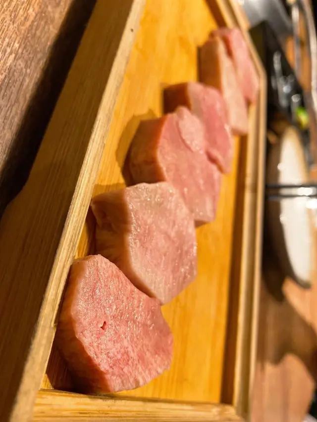 好耐無去食燒肉 見到午市有7折優惠 緊係要去試下啦🤪 九宮格燒肉盛盒我覺得尼個set 幾好,可以一次過試哂唔到款式既牛,岩哂食牛愛號者🐮。而且覺得邊款牛好食又可以散嗌多少少食👍🏻份量黎講都算Ok 每款大約2-3塊,牛既質素唔錯又唔鞋唔韌。當中厚切牛舌、Prime 牛小排和A4和牛印象最為深刻,其他醃味牛肉都整得好好食,醃得岩岩好唔會太過咸蓋過牛本身既味,整體黎講尼個set 係好食又抵食🤤厚切牛舌芯牛舌芯口感爽口彈牙,食落軟腍而且啖啖肉香🤤頂級肉眼壽喜燒唔好見佢得3塊好似好唔抵食咁!每塊都好大塊而且油脂岩岩,輕輕一燒塊牛已經食得,食落牛肉味非常濃郁,而壽喜燒重點就係尼個黑松露蛋漿,餐廳調配得非常出色好食,真係有壽喜燒味架‼️🤤日本A4和牛肉眼上蓋大理石油脂花紋分佈均勻,肉質滑嫩,肉汁鮮甜,可惜肉味唔太濃郁。🥲豪洲和牛大腸脂肪比較多,口感非常有嚼口,試過一次就夠了😂…查看更多