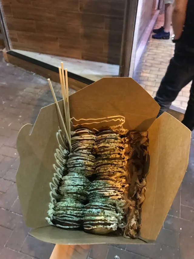 本身好少機會入屯門,今次有機會去屯門,見到附近有間好出名既章魚燒,當然要去試下,但估唔到買一盒章魚燒要等成45分鐘,見佢咁受歡迎等一次半次都無妨。係周圍行到腳斷先過左一陣,雖然係即叫即燒,但一個小食類既食物要等咁長時間真係有啲扣分,唔等都等左一段時間,點都頂埋去。終於都等到,可以食得,外型都幾吸引,仲有好多木魚絲。一試之後,發覺無想像中咁好食,中間只係得一粒章魚無其他野,雖然章魚燒個心軟綿綿,但外皮唔夠脆,而且沙律醬同燒汁可以再多少少,因為覺得唔係幾夠味。只可以講同日本食到既章魚燒好似,但唔係我食過最好食既章魚燒。…查看更多