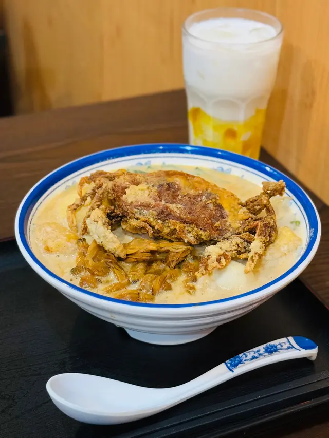 朋友話佢舊公司附近好多小店性價比幾高,我就叫佢帶我去試下!凍真百香果梳打杯面有半個真百香果,飲用既時候可以自行將適量既百香果籽刮落梳打水中。梳打水口感清爽岩晒夏天飲,無糖所以飲落好健康!只有百香果果肉帶來微微既酸甜感,亦好夠氣!話梅桔仔水飲品面漂浮著原粒桔仔同話梅,飲品酸甜適中,話梅既鹹香同桔仔味道好夾,飲落都好健康。原隻炸軟殼蟹蜆肉無味精椰爺秘傳叻沙摻摻原隻軟殼蟹超大隻,差唔多成隻碗咁大,質感外脆內軟。湯面上有好多蜆肉,味道鮮甜。摻摻份量好多亦都好掛叻沙醬汁,味道濃郁!食到中間可以落青檸汁,味道更提鮮!榮螺片滷水燉金沙骨香草椰奶湯摻摻螺片份量都唔少,肉質幾鮮嫩,而金沙骨肉質都幾軟腍。湯底濃郁又順滑,充滿椰奶香味,感覺比較清新。雪糕斑斕椰香手工咖央多士(自家鮮製)多士外脆內軟,加埋冰涼既雪糕,口感層次好豐富!食落同時有濃郁班斕同椰香味,兩者味道高度融合,都唔會才蓋過對方既味道。氣炸新鮮滷肉捲拼甜酸醬由於係氣炸,所以一啲都唔油膩!滷肉捲外皮酥脆,內裏口感扎實。再沾上甜酸醬一齊食,就更開胃!…查看更多