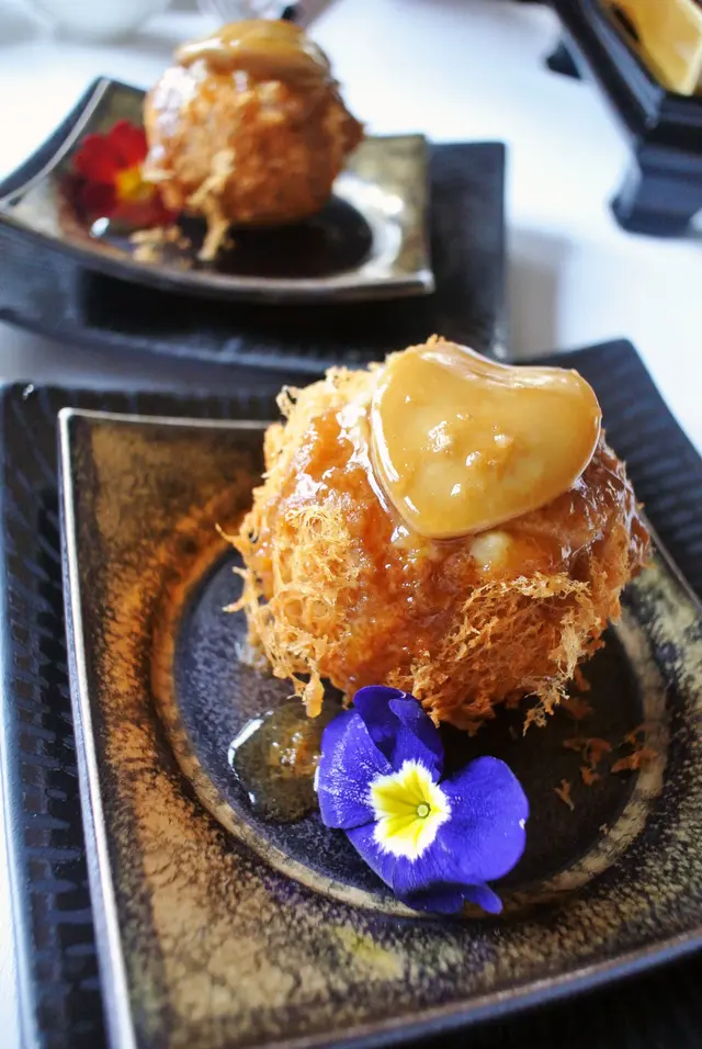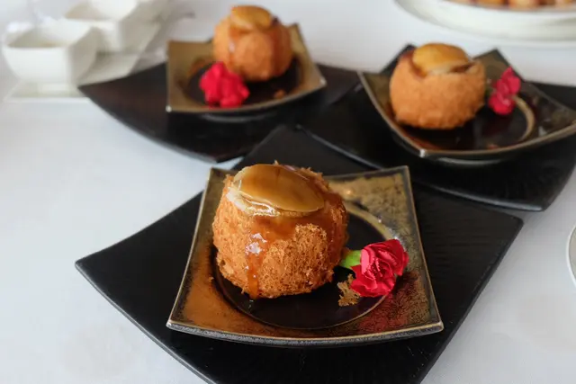 老實說...一直覺得香港的米芝蓮只是一個笑話......二三星的還真的很不錯一星和推介的可說是地雷遍地.....所以一直都沒什麼儲星星的想法但應該是因為台灣沒有他們自家的米其林吧所以每每有台灣的朋友來到香港總是很喜歡去追星~~!!還真希望不要有一天誤中地雷而對香港感到失望吧......這次到欣圖軒是12月尾, 也是台灣朋友訪港前就指定要去試試的大概早了半個月就打電話去訂好位去到才發覺......其實也不一定要預訂啦......星期五的下午也才大概坐滿一半而已餐具以玉為主題, 感覺氣派典雅不過那塊玉板其實有何用途就不得而知了......未上菜已被收走點菜前奉上六式醬料...比較特別的有來自九龍醬園的豉油不過這次都是食點心, 所以全都用不上......感覺有點浪費同時奉上的還有極高質的合桃三個人都只顧著不停的吃而遲遲未開始點餐XDD主攻點心, 當然不得不試其招牌作之一原隻鮑魚海鮮脆芋盒賣相精緻, 炸功高超, 不油不膩內裡滿滿的芋泥和蟹肉, 非常軟滑加上薄薄而香脆的外層, 外脆內滑, 香上加香再來是以前沒見過, 近年香港愈來愈常見的雪山包常見到大多是叉燒, 欣圖軒有點特別賣的是香芋火鴨雪山包連續兩個以香芋為題, 這個雪山包的芋頭味明顯失色但...未有另此雪山包不好食了......而是超級好食!!可說是食過最好味的雪山包!!主因是表層, 香而不膩, 而且做得很薄, 整個包都十分鬆軟內餡的火鴨, 味道幾乎與叉燒沒什麼分別要仔細咀嚼才能分辨出家禽肉類那一絲絲的紋路味道和口感像極了叉燒但要將燒鴨的肉做到跟豬肉做的叉燒一樣香軟其中的功夫可就大大的不同了......外表跟普通咸水角冇分別但用料就名貴得多......可惜......外表炸得金黃鬆軟但切得很細的內饀味道就不太顯眼感覺和普通咸水角分別不大再來另一道招牌點心 - 極品三式海鮮餃左至右分別是: 長腳蟹肶菜苗餃, 金箔燕液龍蝦餃和川椒蝦籽星斑餃以長形竹盒盛上的確精緻但要蒸好三件海鮮餃所需的時間明顯不同星斑和菜苗明顯的過火, 變老......雖然味道還是不錯但更覺可惜了那上佳的食材......我想下次還是點普通的蝦餃和菜苗餃好了......又是平常少見的配搭欣圖軒的包點著實不錯, 那用煎的底層香氣未有蓋過上部的香軟孜然總是習慣配羊肉.....配和牛感覺有點重口味蓋過了和牛的肉味但也的確已比尋常生煎包好吃多了亮點在雞湯和腐皮, 反而內裡的海鮮已毫無印象極濃以至乎"起膠"的雞湯, 絕非一般茶樓貨色可比腐皮充滿豆香, 至乎極香濃雞湯和內餡海鮮的鮮味都未能影響其分毫極高質素的腐皮卷好味!! 不過可說是沒什麼亮點......唯一可說是其和種材料的比例控制得很好豬肉, 鮮蝦, 蟹黃的味道, 隨著一邊咀嚼, 一邊分層跳出到酒店吃中菜, 當然要一試其甜點吧~~!!Presentation 滿分的楊枝甘露有種煉丹的感覺~~XDD味道就...沒吃到所以不知道這是我點的萬壽杏仁茶萬壽者, 木瓜也.....其實我覺得跟杏仁茶不算很搭搭配的棗泥酥甜度不高, 不錯總結來說, 欣圖軒的點心絕對值得一吃炸點尤其出色希望下次多一點人去一試其主菜環境清幽, 窗外就是星光大道, 維港景致大部份員工態度親切但可惜......服務態度好, 不代表服務質素高這點...以欣圖軒...一家五星級酒店, 米芝蓮兩星食府可謂完全不合格以幾點為例......1. 員工總是來去衝衝, 想要叫停一位點餐或為茶壺加水也有點困難想要他們經常為我們斟茶更是困難...不過這倒沒關係要知道當日大概坐滿一半客人...侍應都已經這麼忙!?人數會不會太少??我只想感覺悠閒一點的去飲茶......2. 一位員工為我們斟茶時, 把水滴得滿上皆是......還要未有為我們抺乾就離開3. 男廁其中兩個洗手盤的洗手液都未能成功按出不知是空了還是故障4. 雖然炸點是比較快做好但我覺得先上口味較清淡的蒸點, 之後才來重口味的比較好吧......希望酒店方面還是要再注重一下員工的培訓吧......…查看更多