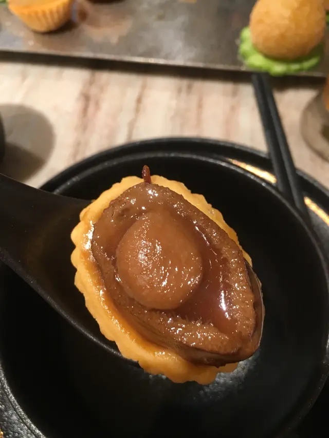 第三次黎到「點心廊」,每次黎都『創作六式拼盤』,因為真係最抵食!六款點心都只係$198。金箔墨汁蟹粉鮮蝦餃烏黑嘅墨汁皮,加上金箔嘅點綴,咬開蝦餃,就見到有好大隻鮮蝦肉同橙黃色嘅蟹粉係裏面,真係好真材實料呀!海膽鳳眼餃海膽都算鮮甜,蝦餃裏面有原隻爽口彈牙嘅鮮蝦,正!😏黑白芝麻流心煎堆仔黑白芝麻炸成煎堆仔嘅外皮,芝麻流心好正,香味十足!黃金啤梨鹹水角啤梨嘅造型好精緻!外層炸得香脆,內餡有豬肉碎、蝦米、冬菇等,鹹香味美!👍🏻原隻鮑魚雞粒酥預先炆煮過嘅鮑魚軟腍入味,不錯吃!一口燕窩蛋撻好矜貴嘅燕窩蛋撻!😍燕窩份量毫不吝嗇,曲奇撻皮鬆化,蛋香十足。…查看更多