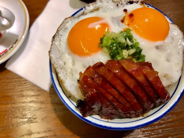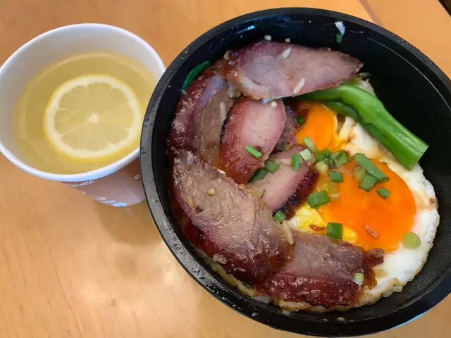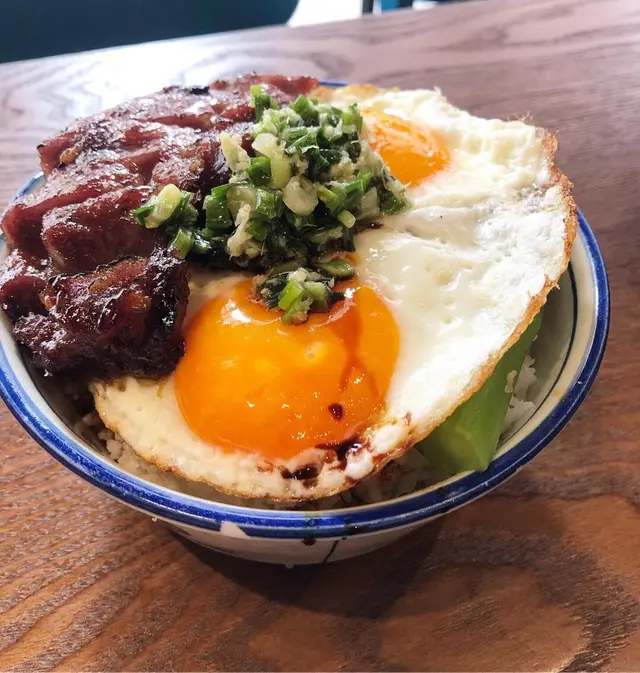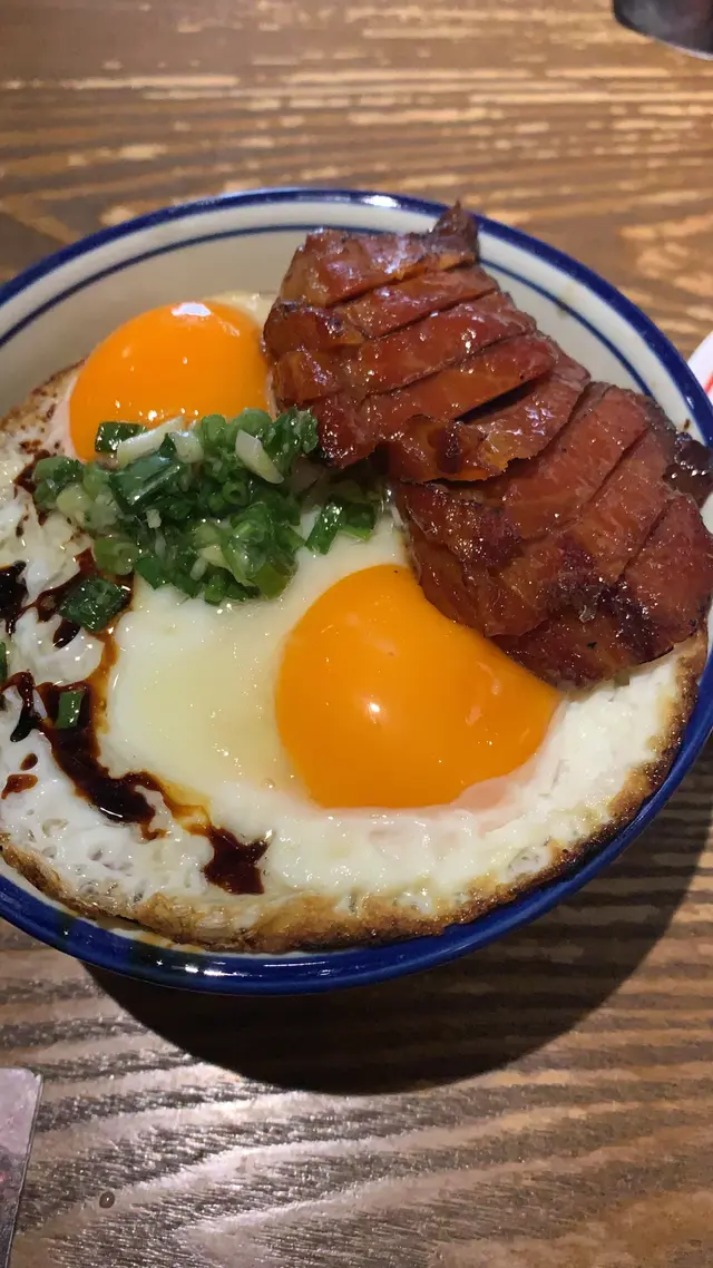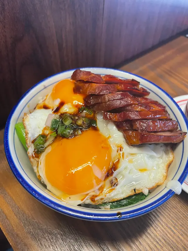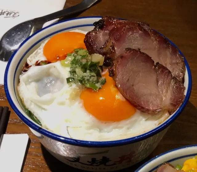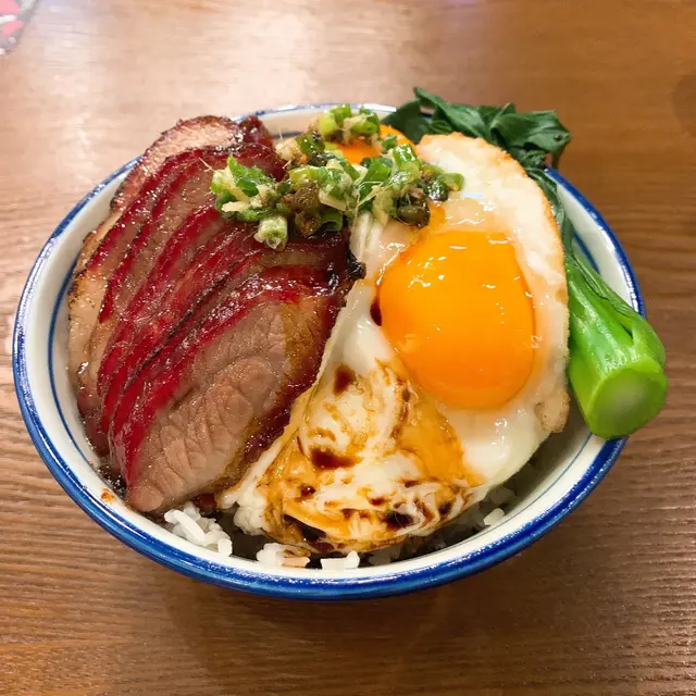 🐷🥚🍚叉燒丼飯配餐飲 $55~叉燒、煎雙蛋、菜、白飯、豉油蔥粒✨餐牌內L1寫了選用肥叉燒,L2寫了叉燒丼飯,今日試下叉燒丼飯先。食晏時段已經坐滿人,落單後店員好快就送飯過來,佢出名叉燒之餘還有脆邊煎蛋,兩隻煎蛋都好搶眼,叉燒邊係有點乾身,中間位置軟身啲,可能肥叉燒比較適合我,有一條菜心,蛋味好香,蛋汁包住粒粒飯,加埋豉油蔥粒配飯頂呱呱,如果多點豉油蔥粒更好🤣,對我來說飯比較多,都食唔晒添😜…查看更多